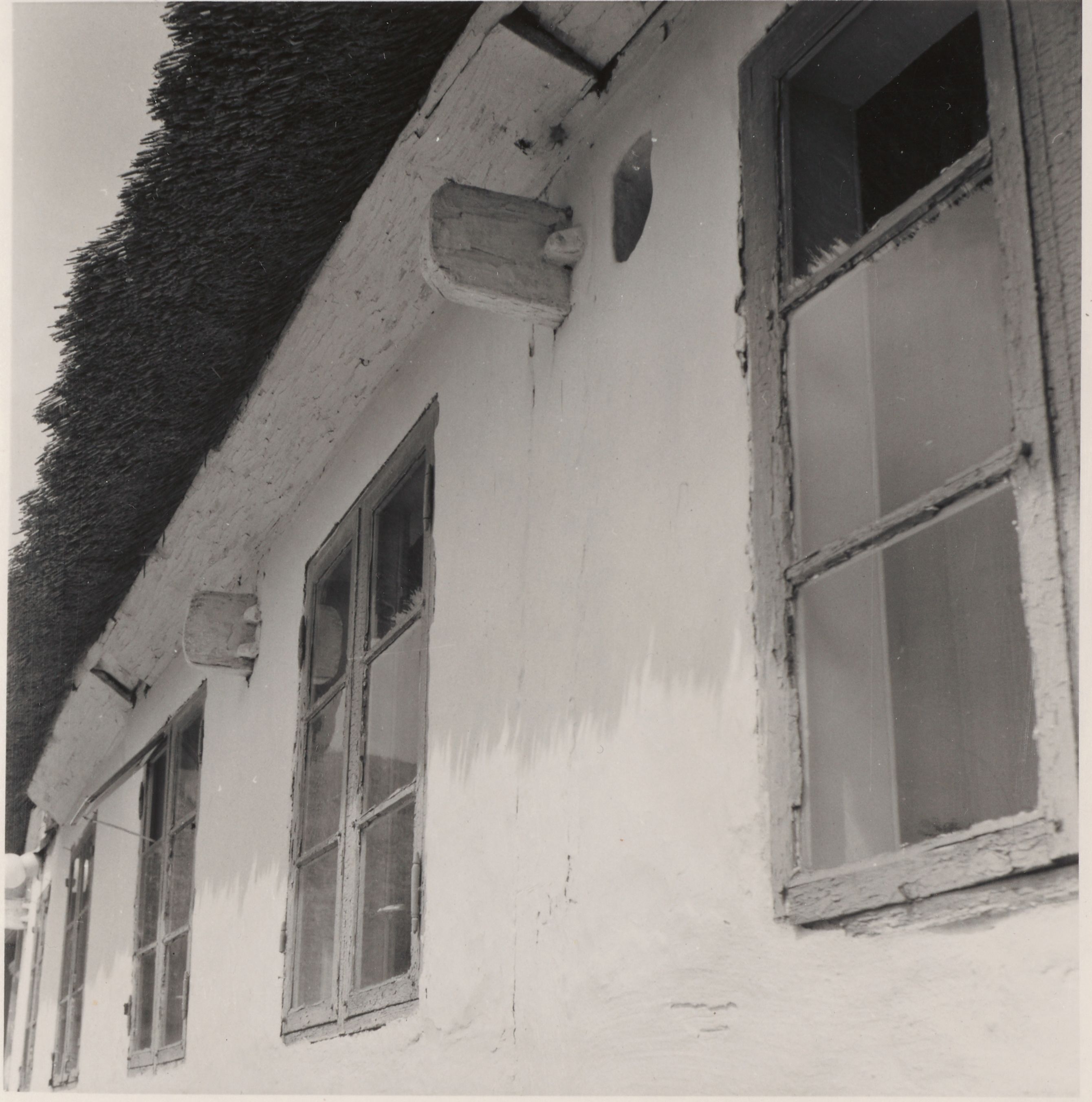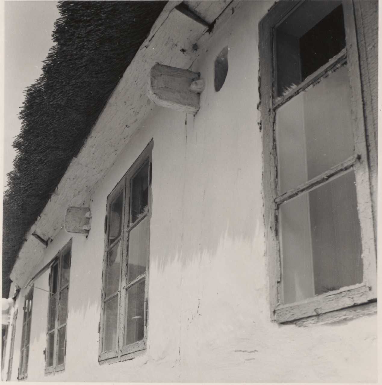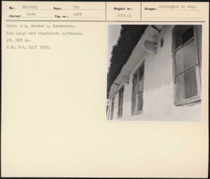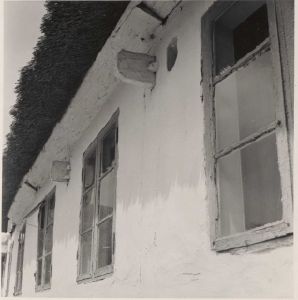 Maskingenkendt tekst fra arkivkort. Matr. 2 a, Rasmus A. Rasmussen, Kik langs med stuehusets sydfacade. Jf. NEU nr, P.M. fot. 10/7 1952.