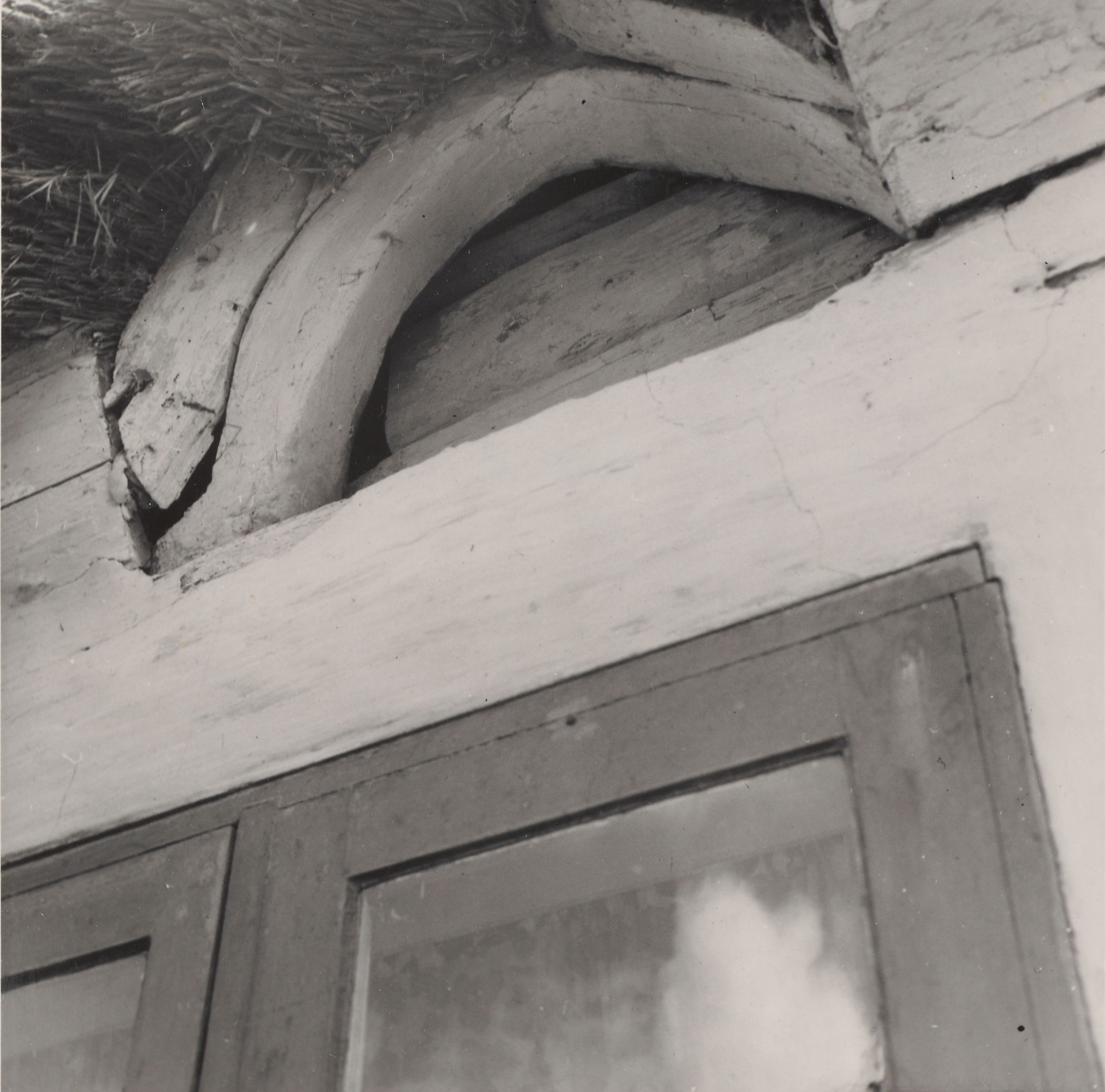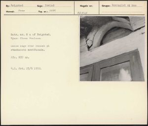 Maskingenkendt tekst fra arkivkort. Matr. nr. 8 a af Brigsted. Ejer: Claus Poulsen. Lille luge over remmen på stuehusets nordfacade. Jfr. NEU nr. B,5. fot. 23/6 1952.