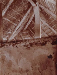 Maskingenkendt tekst fra arkivkort. Gdr,0le Mands gård, Udflyttet vest for Byen(1837) Suler i krumgangen mellem nord- og vestlænge H.Z.fot.1923.