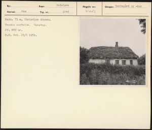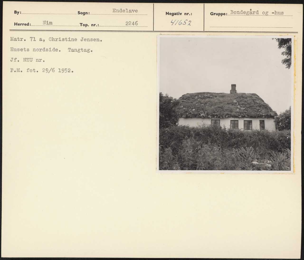 Maskingenkendt tekst fra arkivkort. Matr. 71 a, Christine Jensen. hr mr Husets nordside. Tangtag. Jf. NEU nr- P.M. fot. 29/6 1952.
