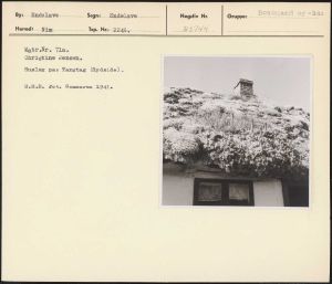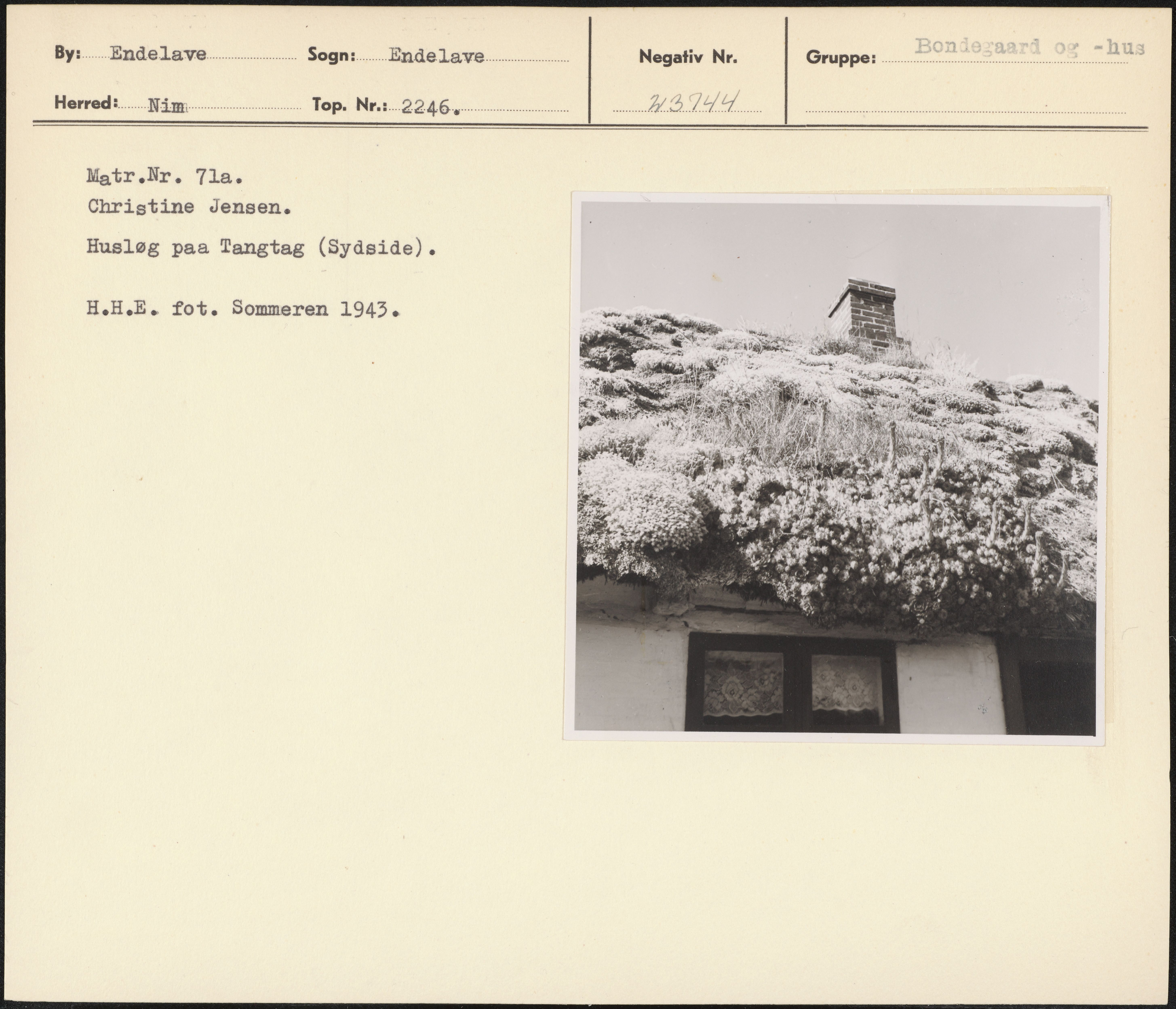 Maskingenkendt tekst fra arkivkort. Matr.Nr. 71a. Christine Jensen. Husløg paa Tangtag (Sydside). H.H.E. fot. Sommeren 1943.
