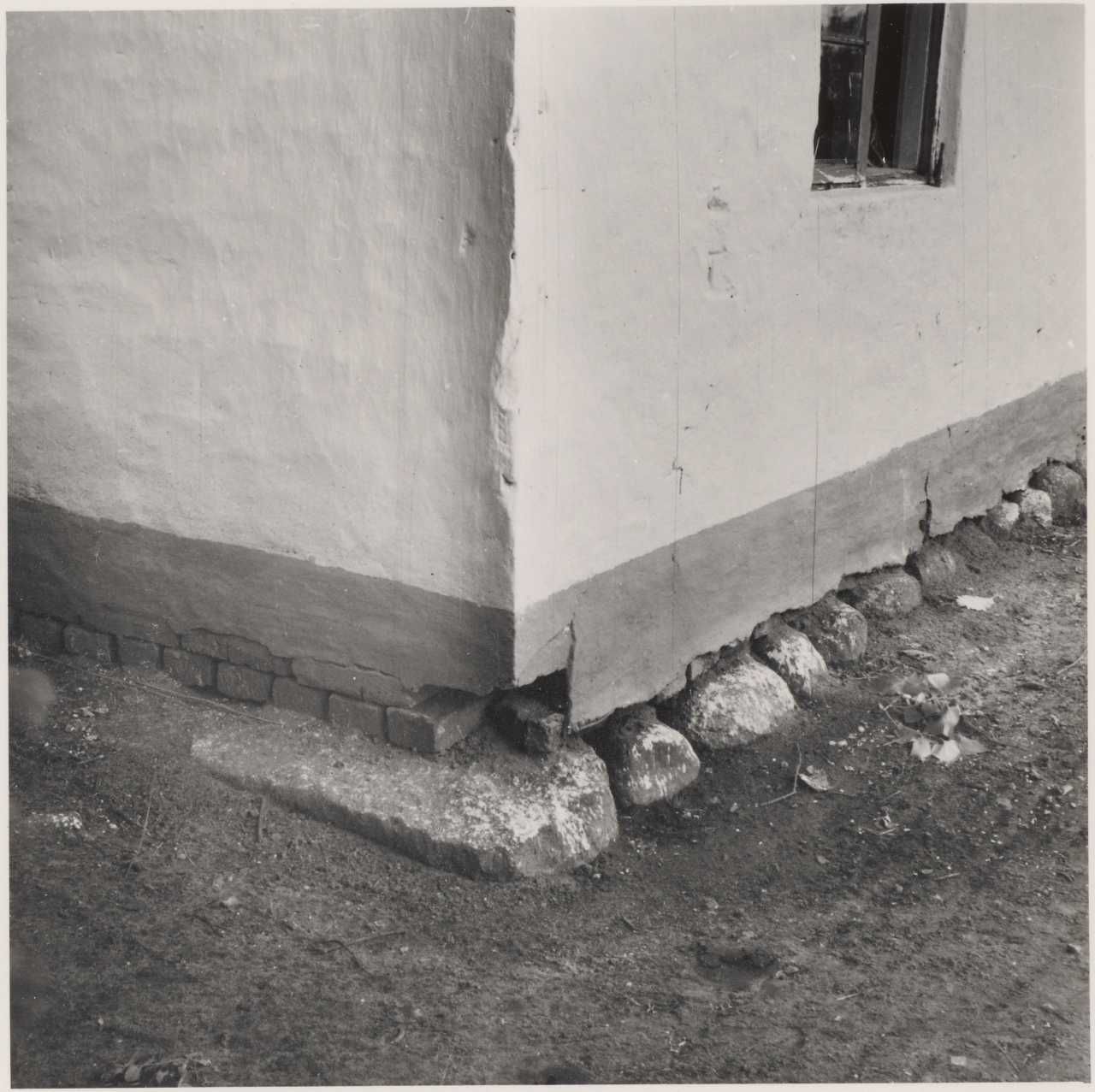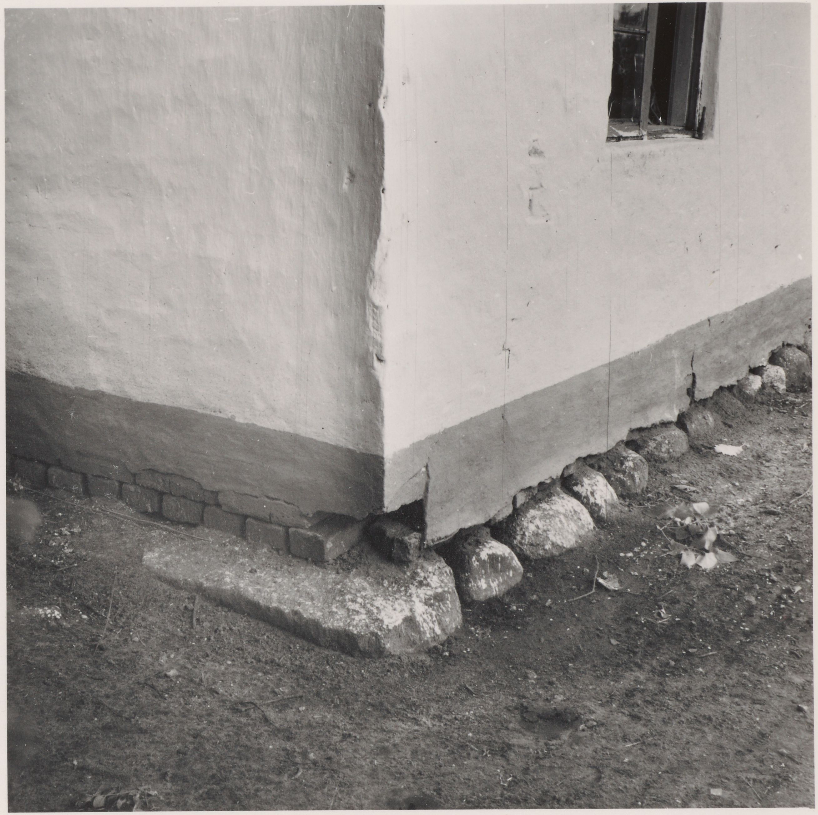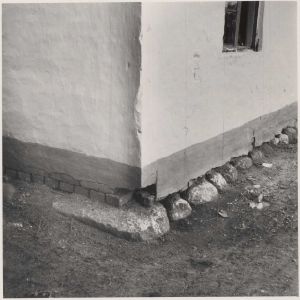 Maskingenkendt tekst fra arkivkort. n Nilels Jensen, KHNatr.Nr, 34 d af Tarp. Sydvesthjørnet af Stuehus. Fot. Sommer 1946, E.T.