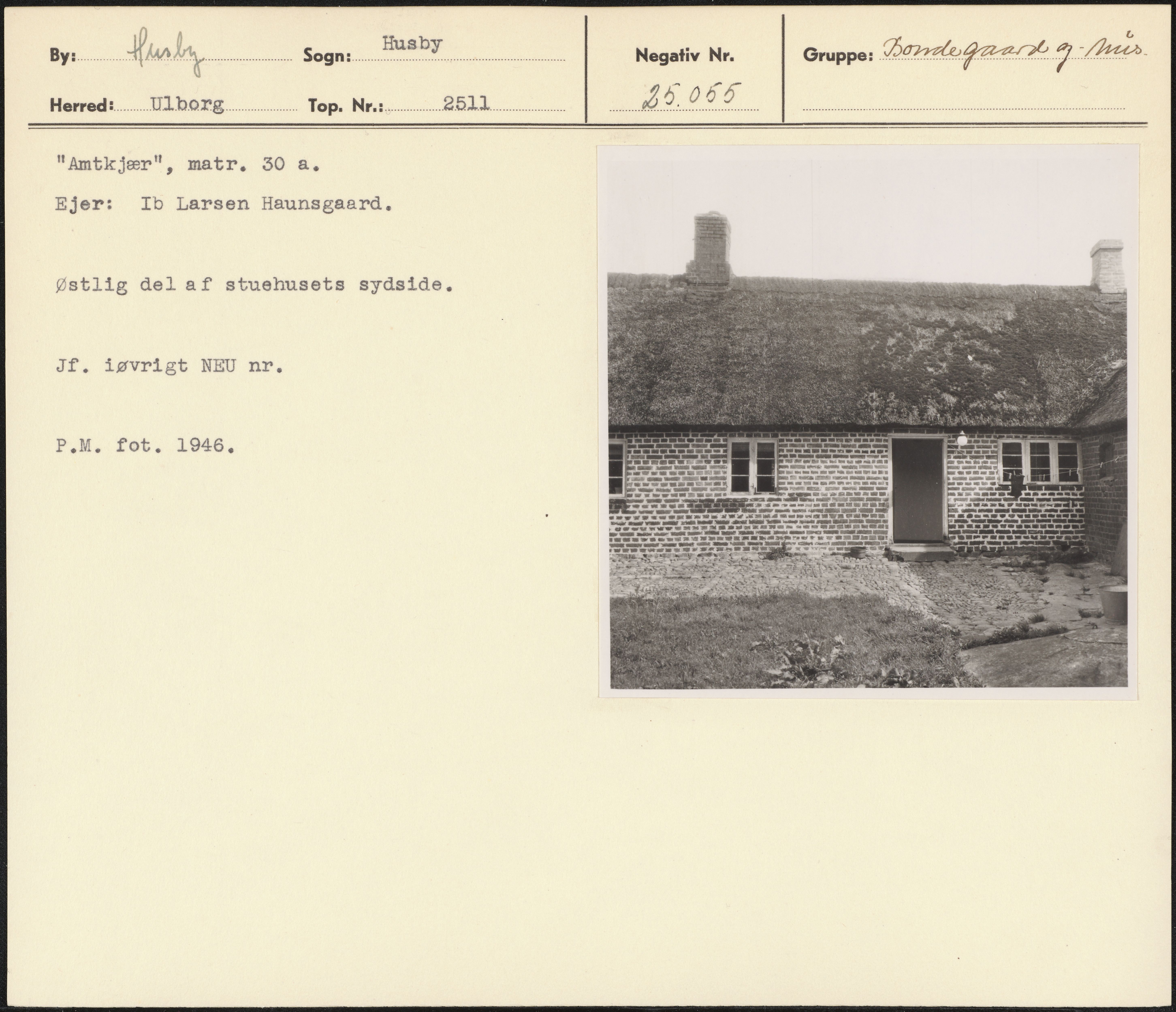 Maskingenkendt tekst fra arkivkort. Amtkjær", matr. 30 a. Ejer: Ib Larsen Haunsgaard. Østlig del af stuehusets sydside. Jf. iøvrigt NEU nr. P.M. fot. 1946,