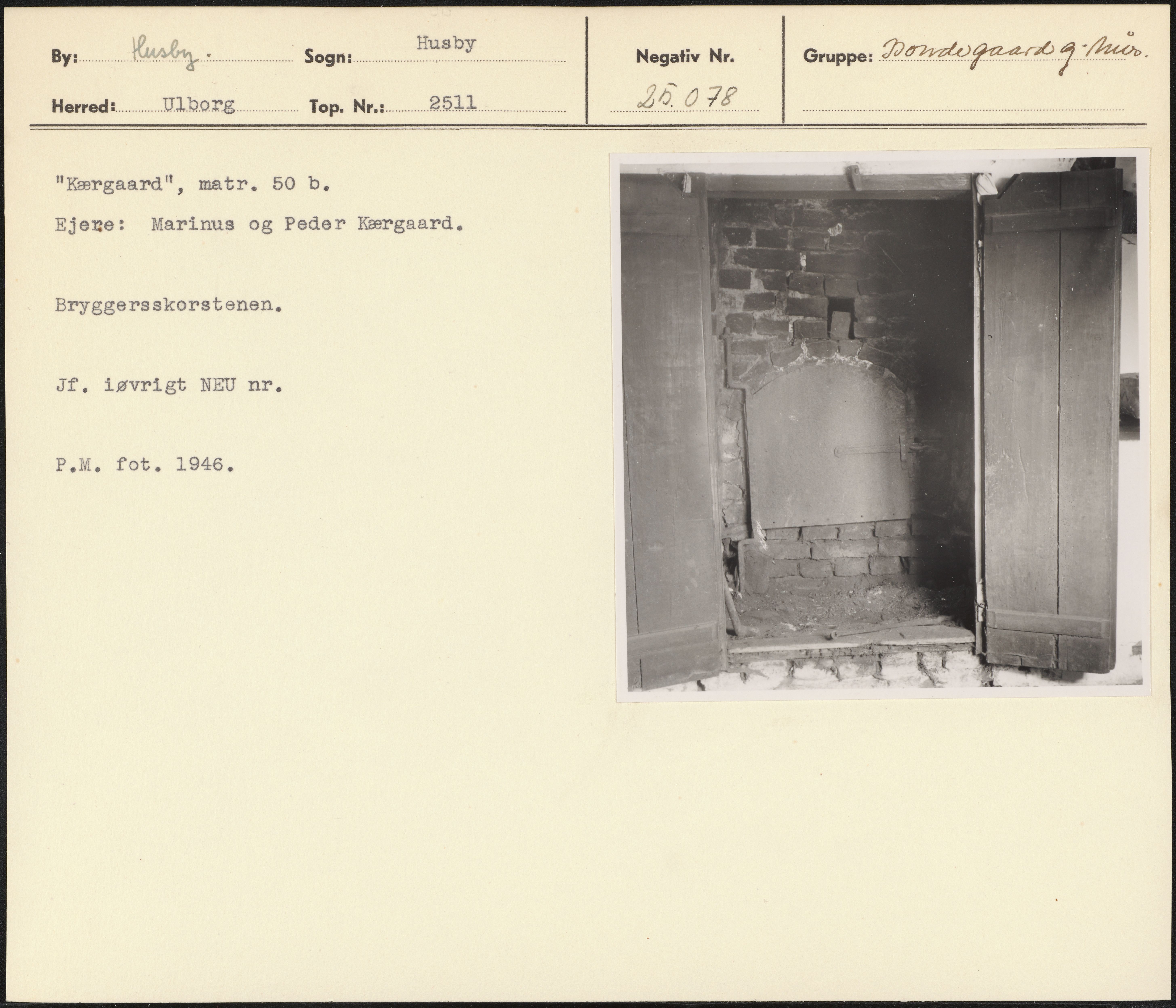 Kærgaarda", matr. 50 b. Ejere: Marinus og Peder Kærgaard. . Bryggersskorstenen, Jf. iøvrigt NEU nr. P.M. fot. 1946.