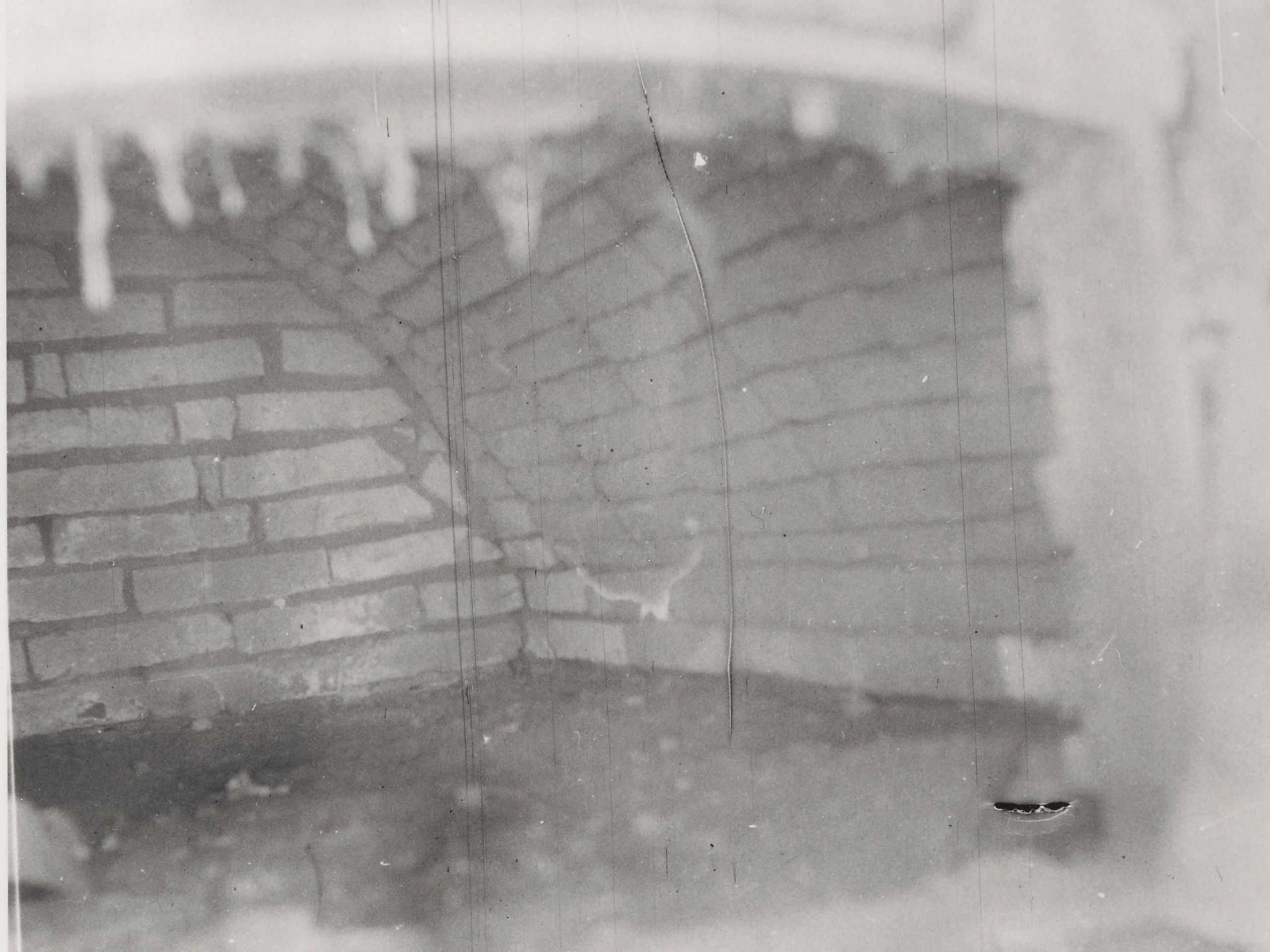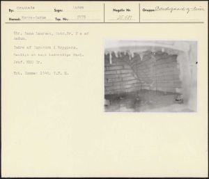 Maskingenkendt tekst fra arkivkort. Car. Hans Laursen'atr.Nr. 2 a af Aadum. Indre af Sazerovn i Bryggers. Umuligt at taze indvendige Maal. Jyvnf. NEU ”r. Fot. Sommer 1946. I.F. K.