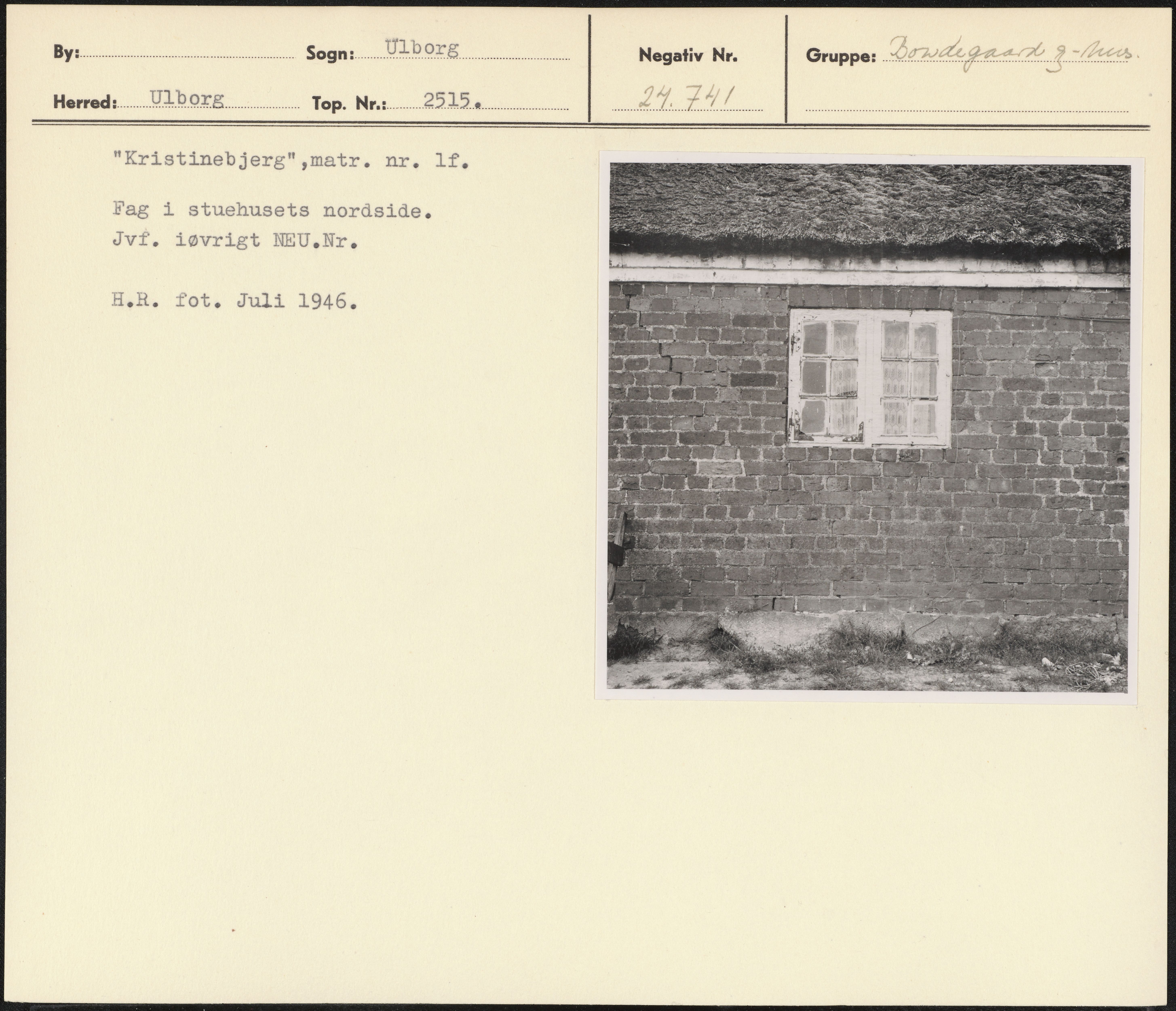 Maskingenkendt tekst fra arkivkort. Kristinebjerg",matr. nr. 1f. Fag i stuehusets noråside, Jvf. iøvrigt NEU.Nr. H.R. fot. Juli 1946,