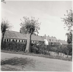 Facader mod gaden, Bøssemagergade 48-34, Hellebæk, 1972