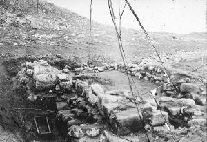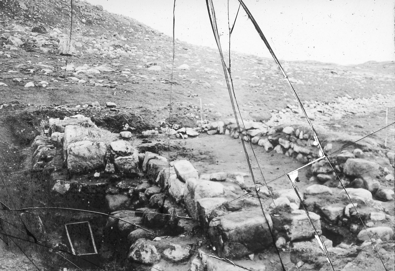 I "Fortegnelse over en Serie Lysbilleder fra Grønland" findes tilhørende tekst til viste billede: "Parti fra Ikigait i Sydgrønland nær Frederiksdal. Man ser den udgravede Kirke og Kirkegaard fra Nordbotiden samt en aabnet Grav. Det var her, at Dr. Nørlund fra Nationalmuseet i Sommeren 1921 gjorde de rige Fund af middelalderlige Dragter. (Dr. Nørlund fot.)". Fotografen er historiker og arkæolog Poul Nørlund (1888-1951). Billedet stammer fra "En Serie Lysbilleder fra Grønland", hvor alle er udvalgt af lektor i geografi Sophie Petersen (1885-1965). I serien er i alt 38 billeder i sort-hvid. Label er påsat dias med teksten: "Foto-Magasinet, A-S. Frederiksborggade 7. Ser. G. Nr. 12". Dias måler ca. 8x8 cm.