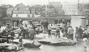 Billedet er sort-hvid og stammer fra lysbilledserie benævnt "Serie 339: Færøerne. Ukolor.". I serien er 70 lysbilleder. På dias er påsat labels: "V. Richter. København." og "65. Efter Grindedrabet i Thorshavn". Firmaet V. Richter producerede, kuraterede og distribuerede lysbilledserier i primært 1920'erne og 1930'erne. Dias måler ca. 8 x 8 cm.