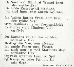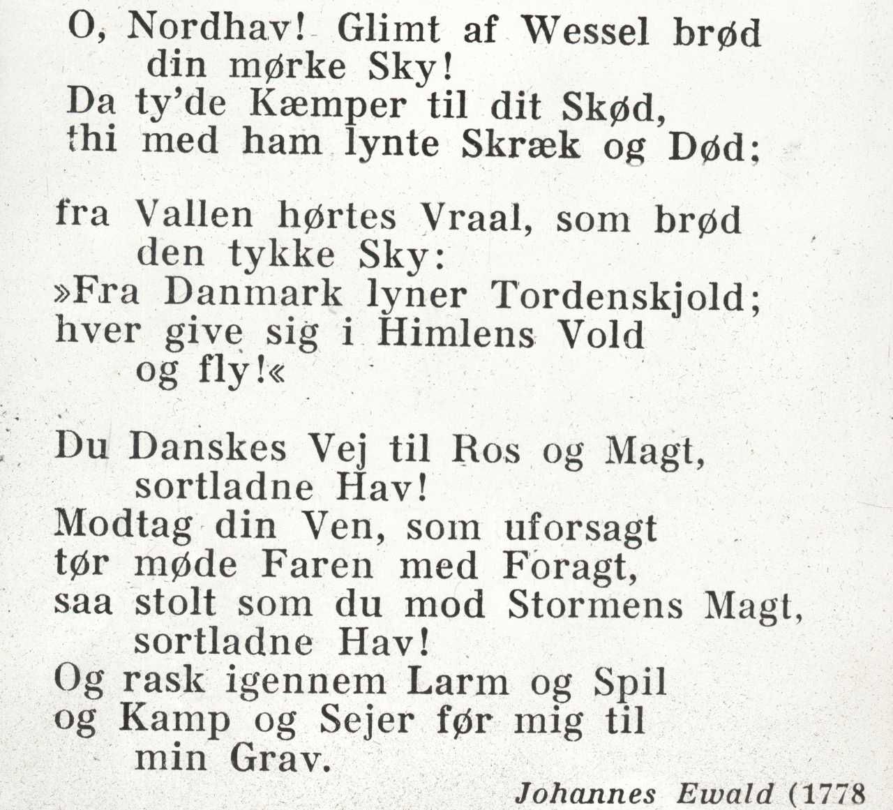 Sangtekst: "Kong Christian stod ved højen mast", af Johannes Ewald (forfatter) og Ditlev Ludvig Rogert og Johann Hartmann (komponister)