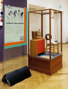 Børnehaveinventar fra børnehuset Strandbo udstillet i fleksudstilling på Nationalmuseet, Prinsens Palæ, september 2013.