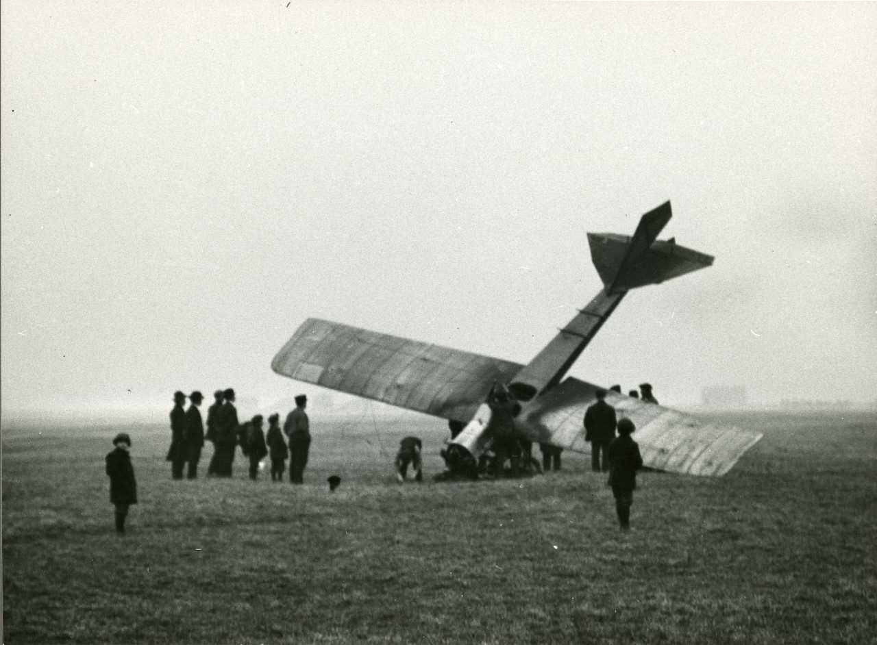 Flyvemaskinen "Havari" nedstyrtet ved Kløvermarksfælleden, 1914