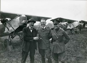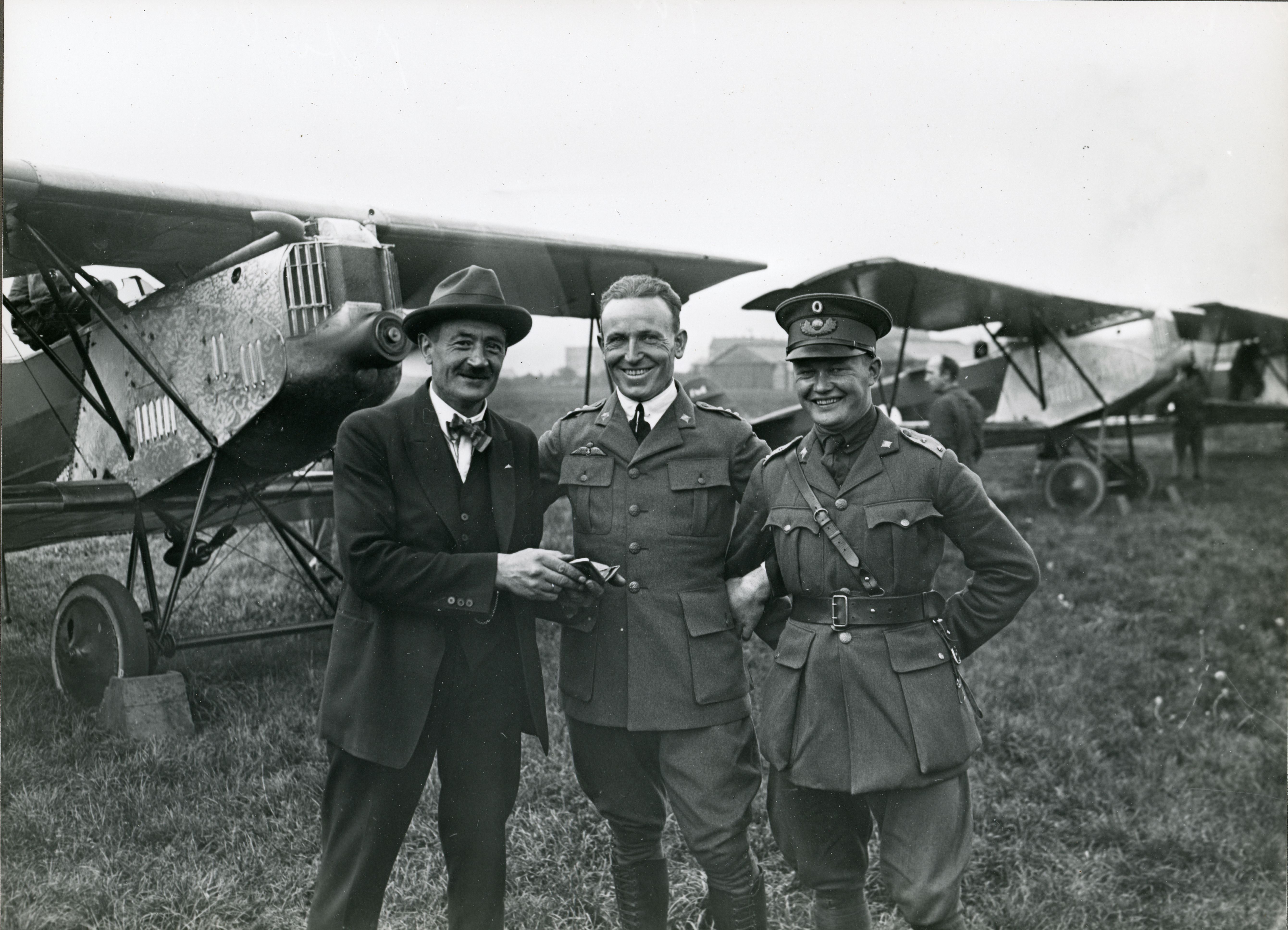 Fællesfoto taget på Kløvermarksfælleden. Fra venstre: Mester Peter Nielsen, Førslev og en konstruktør.