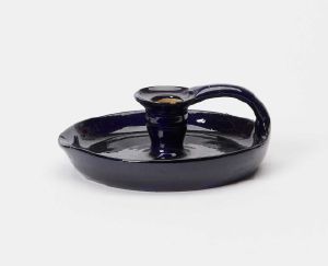 "betegnelse": "Lysestage,lav, blåglaseret ler",