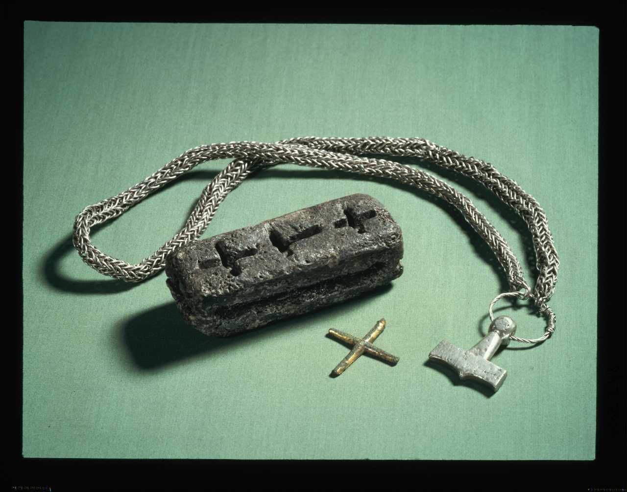 Thorshammer af sølv m. kæde (18196). Fra Sejerby sogn.