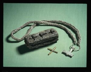Kors af bronze og guld (19994). Fra Jelling sogn.