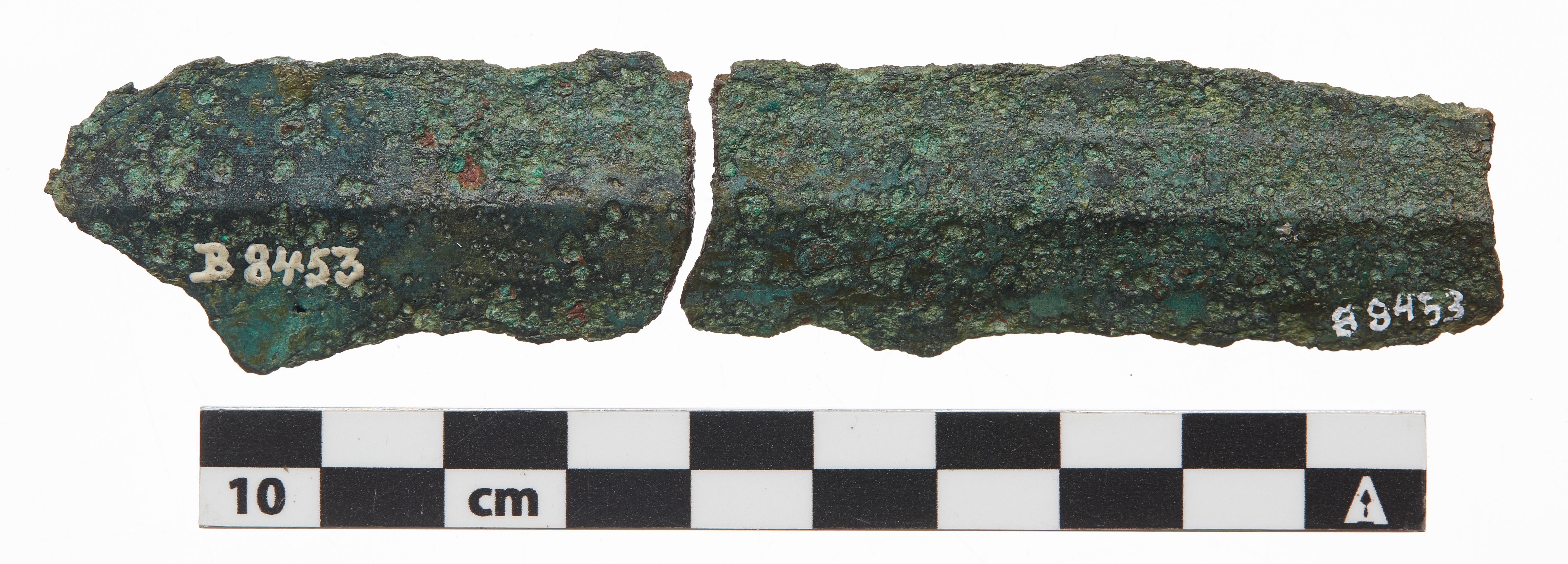 "betegnelse": "Sværdklinge, fragm., bronze, æld.br.a.",