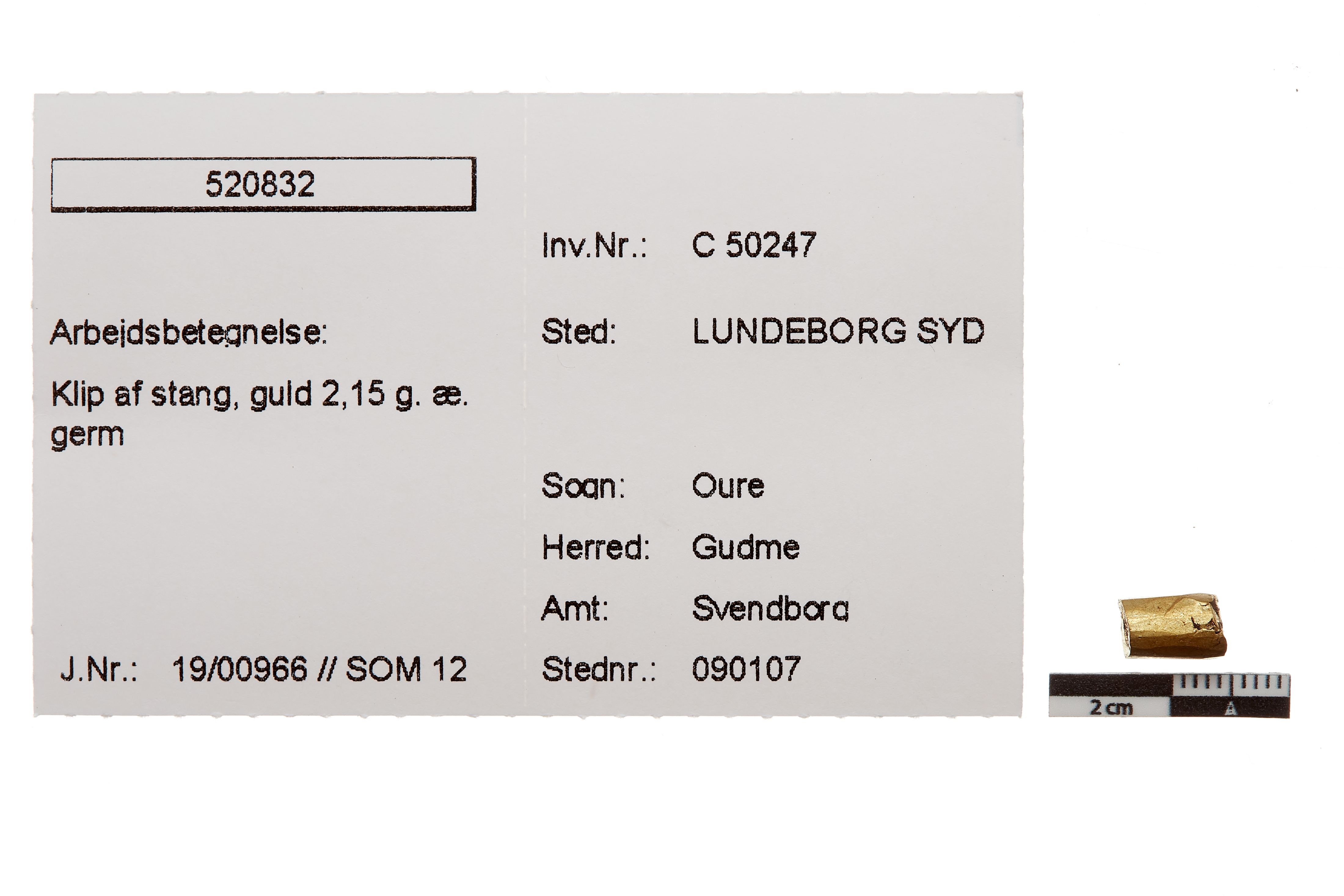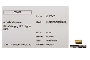 "betegnelse": "Klip af stang, guld 2,15 g. æ. germ",