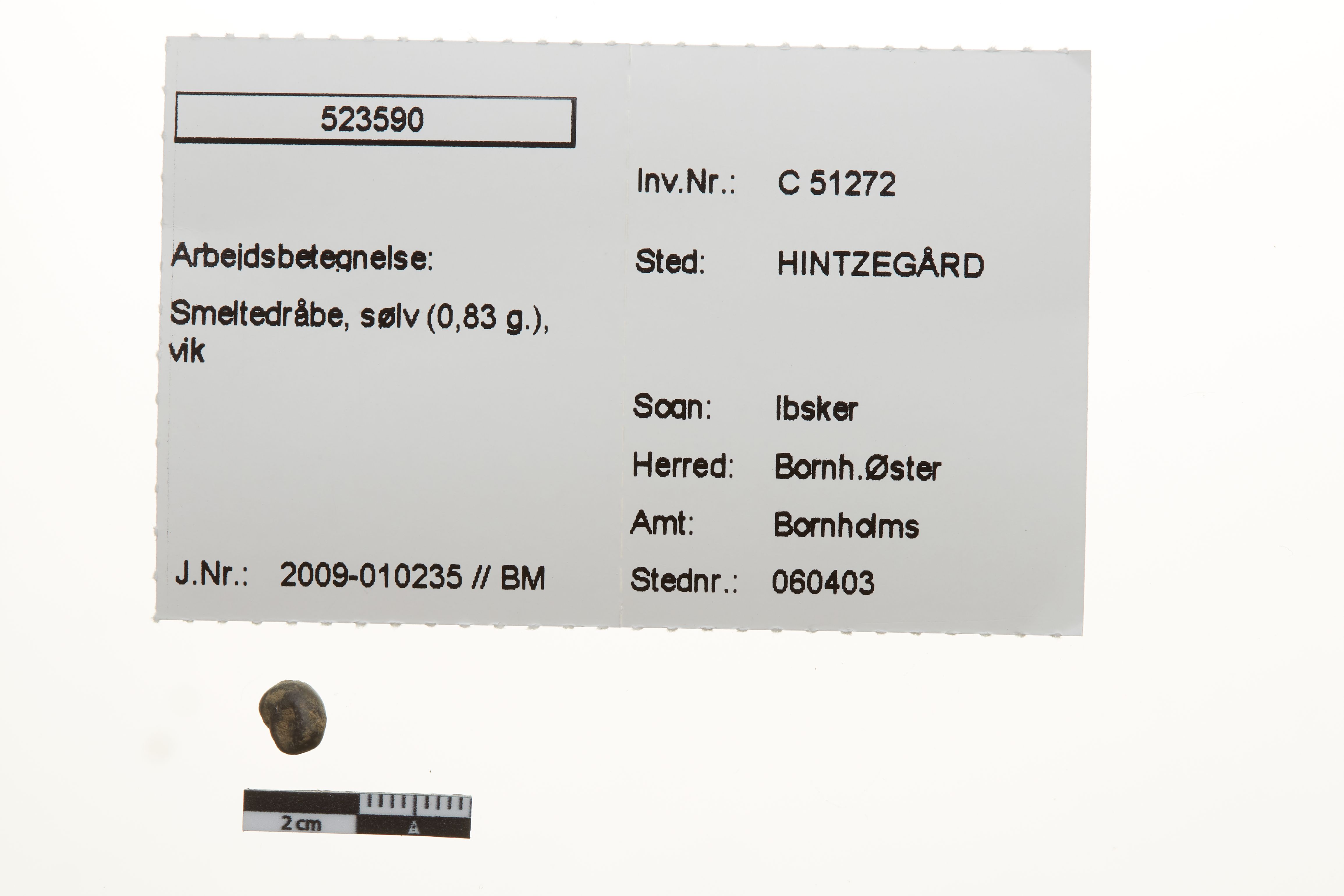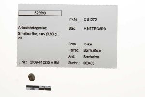 "betegnelse": "Smeltedråbe, sølv (0,83 g.), vik",