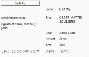 "betegnelse": "Ligearmet fibula, bronze, y. germ",