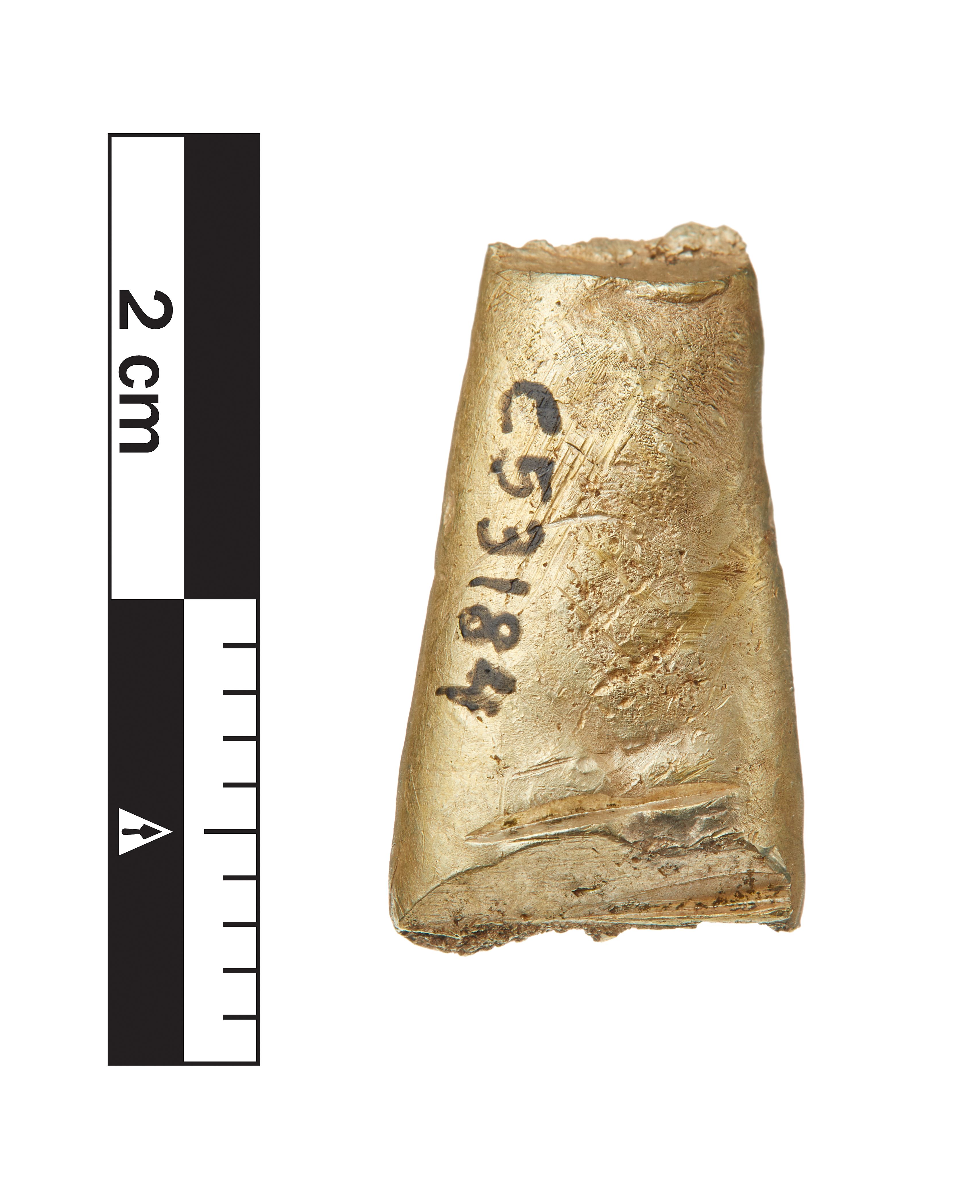 "betegnelse": "Guldklip, klip af armring el. barre?, guld (3,87g), germ. j.a.",