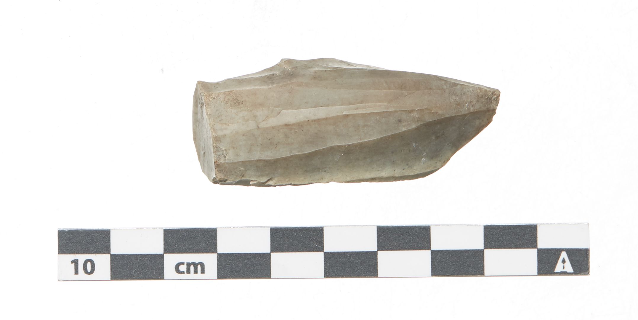 "betegnelse": "Flækkeblok (enpolet, konisk), flint, æld.st.a.",