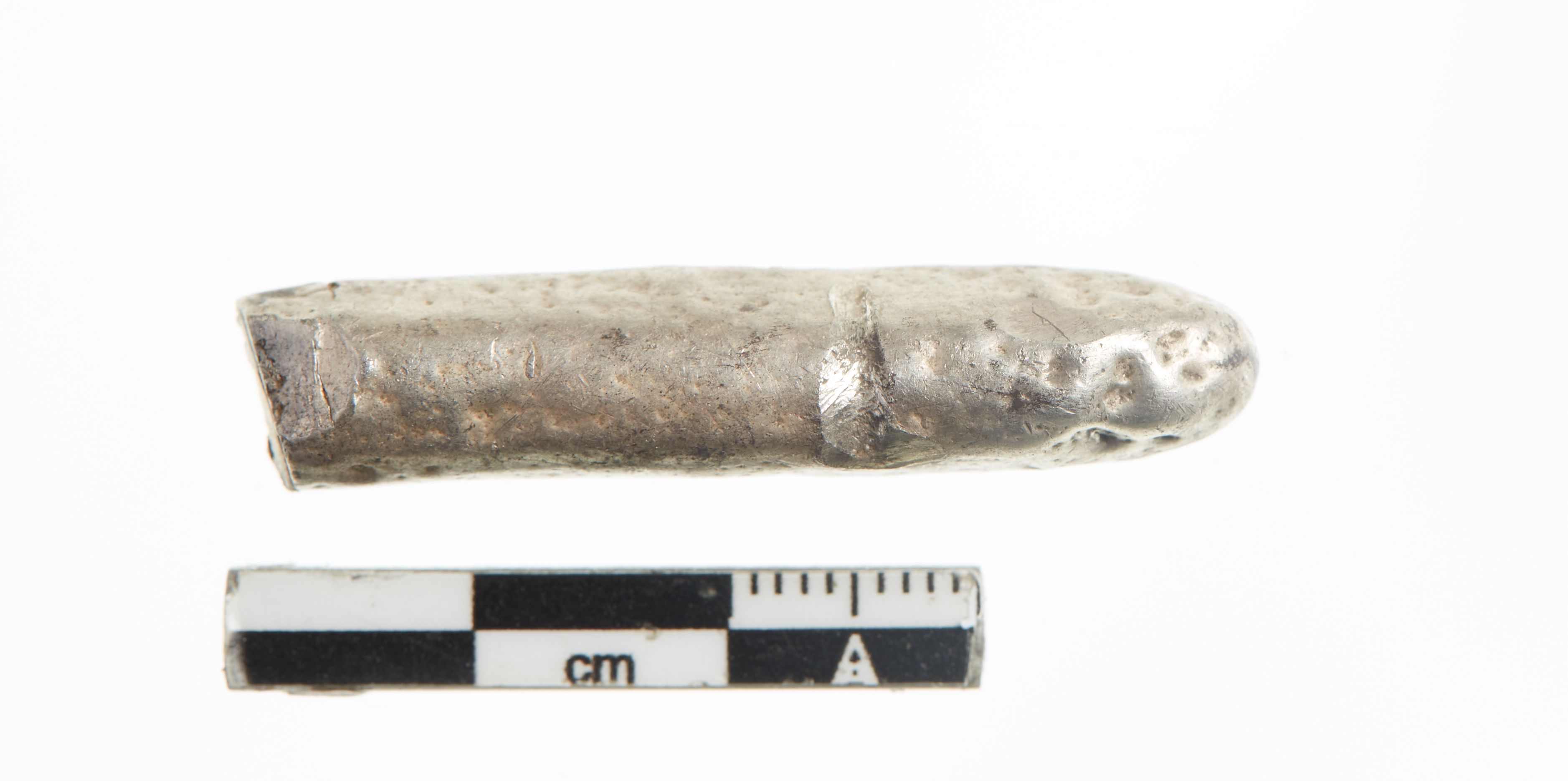 "betegnelse": "Endestykke af barre, sølv, 18,77g, vik",