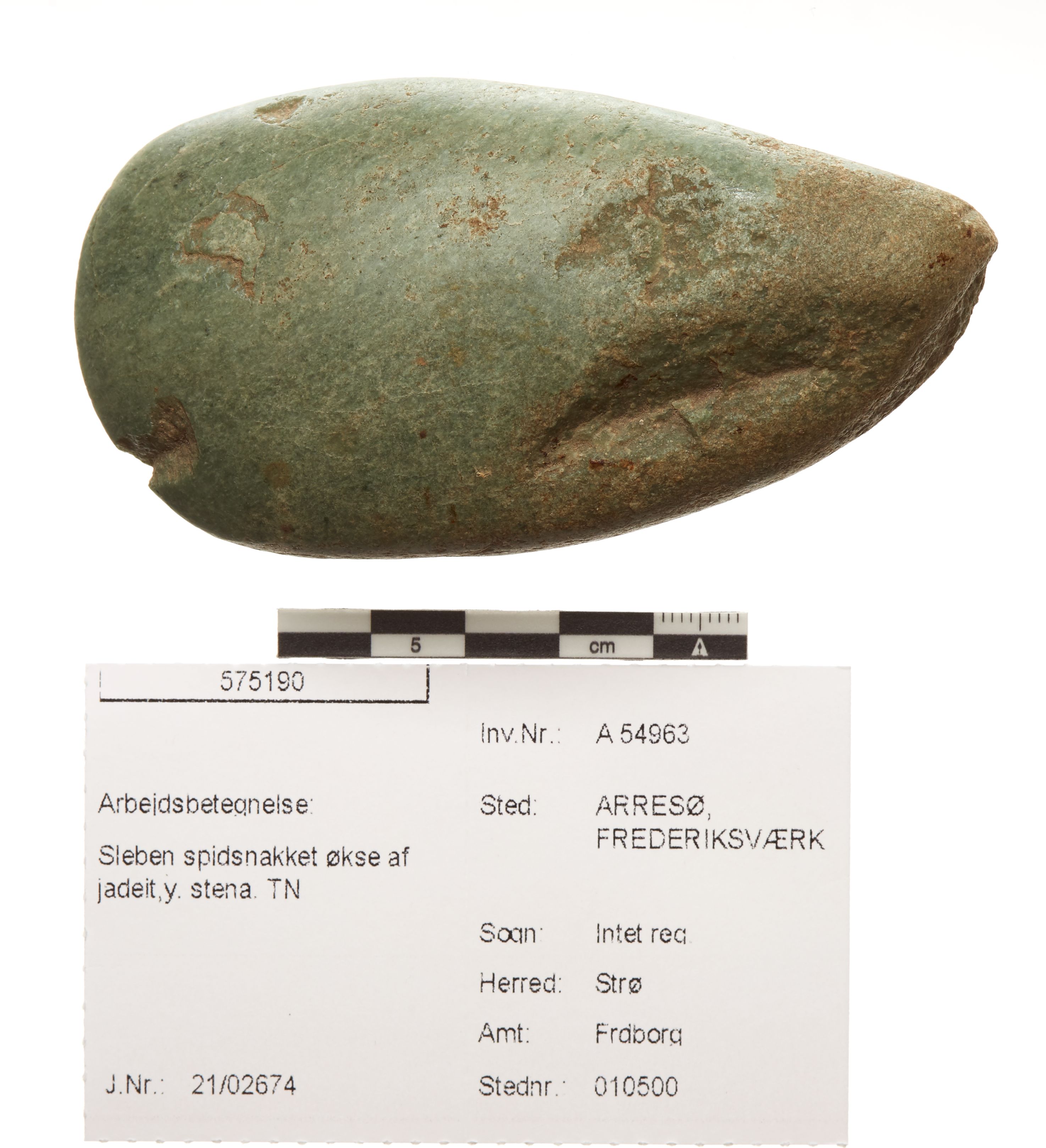 "betegnelse": "Sleben spidsnakket økse af jadeit,y. stena. TN",