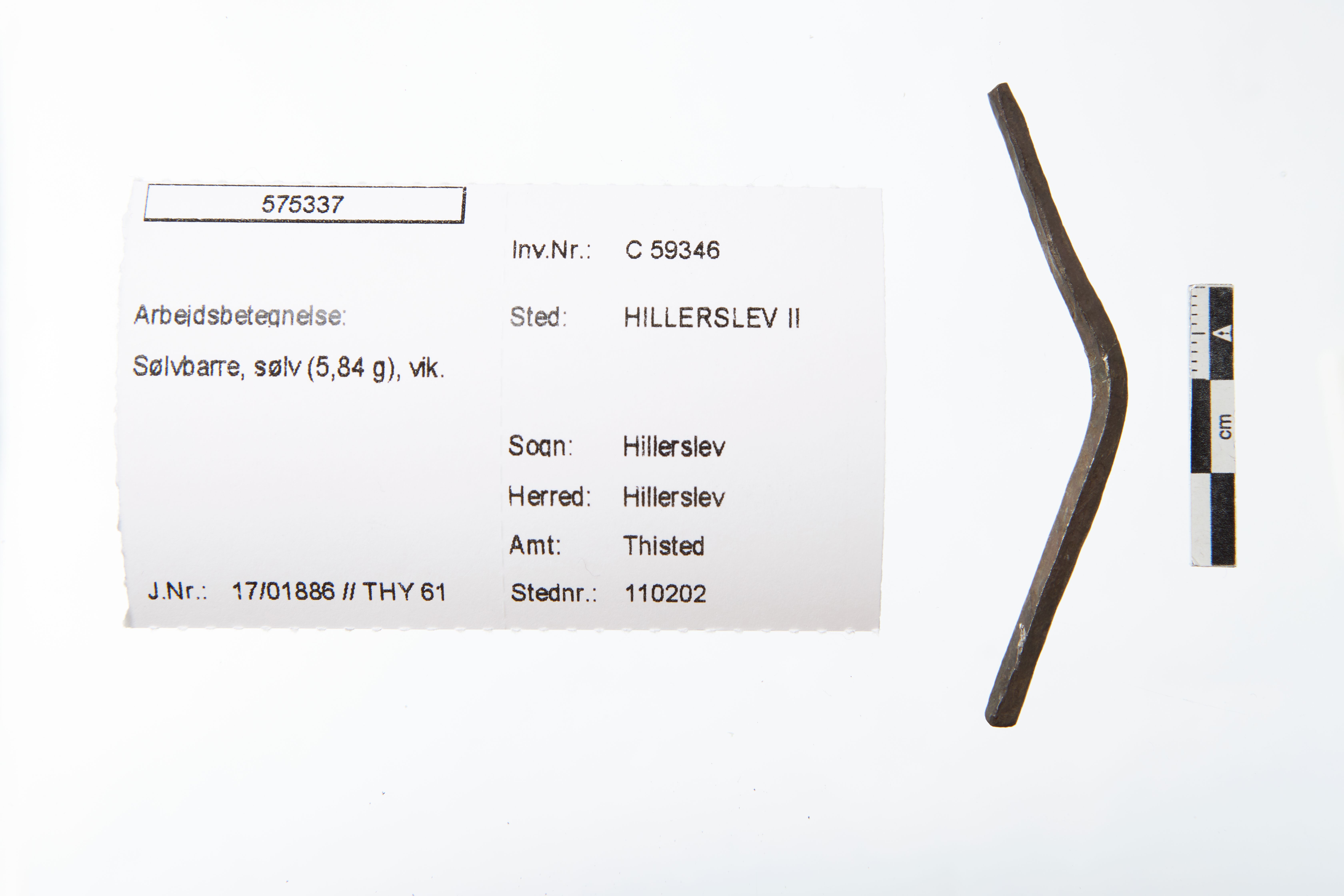 "betegnelse": "Sølvbarre, sølv (5,84 g), vik.",