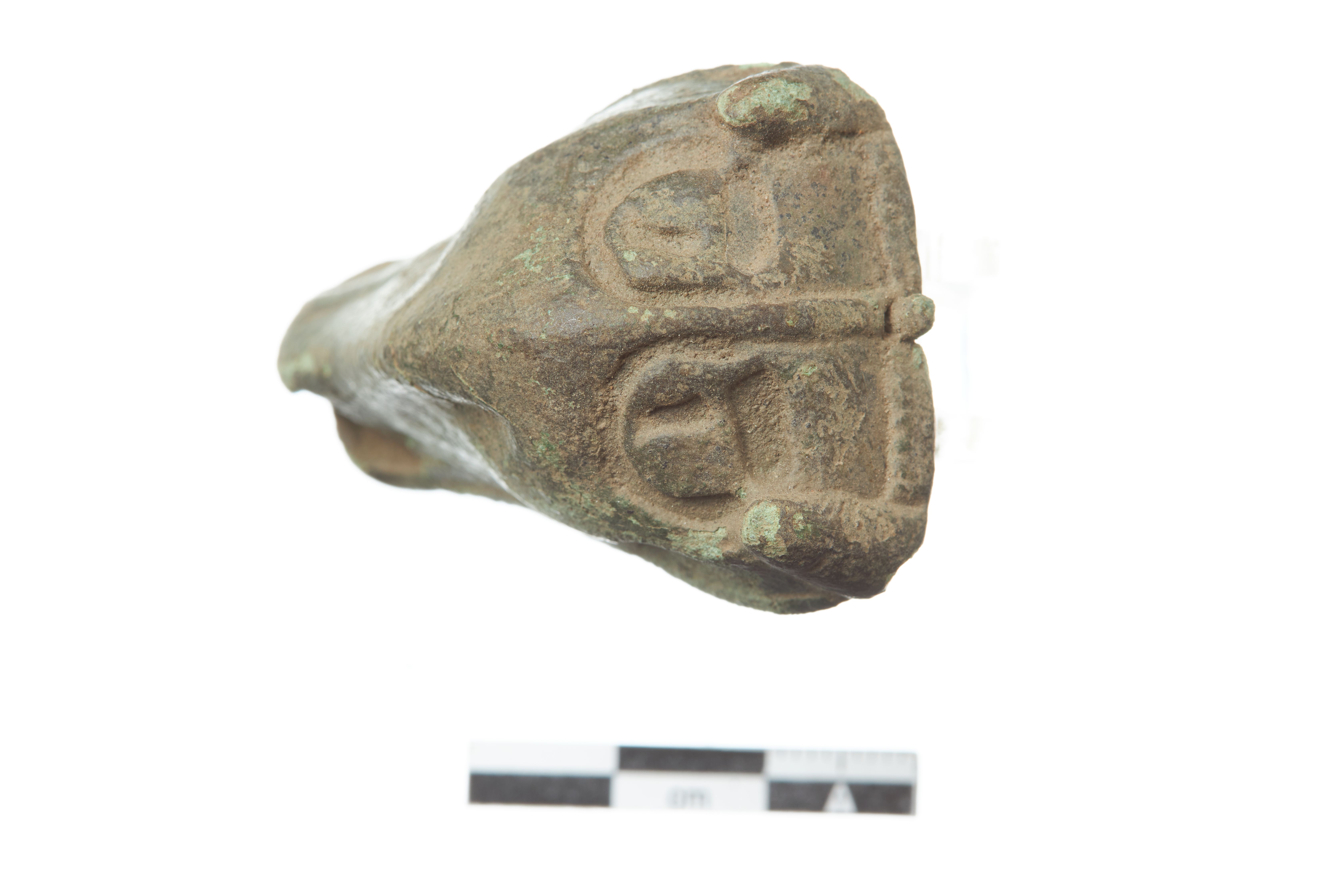 "betegnelse": "Dyrehovedformet fibula, gotlandsk, bronze, vik.",