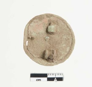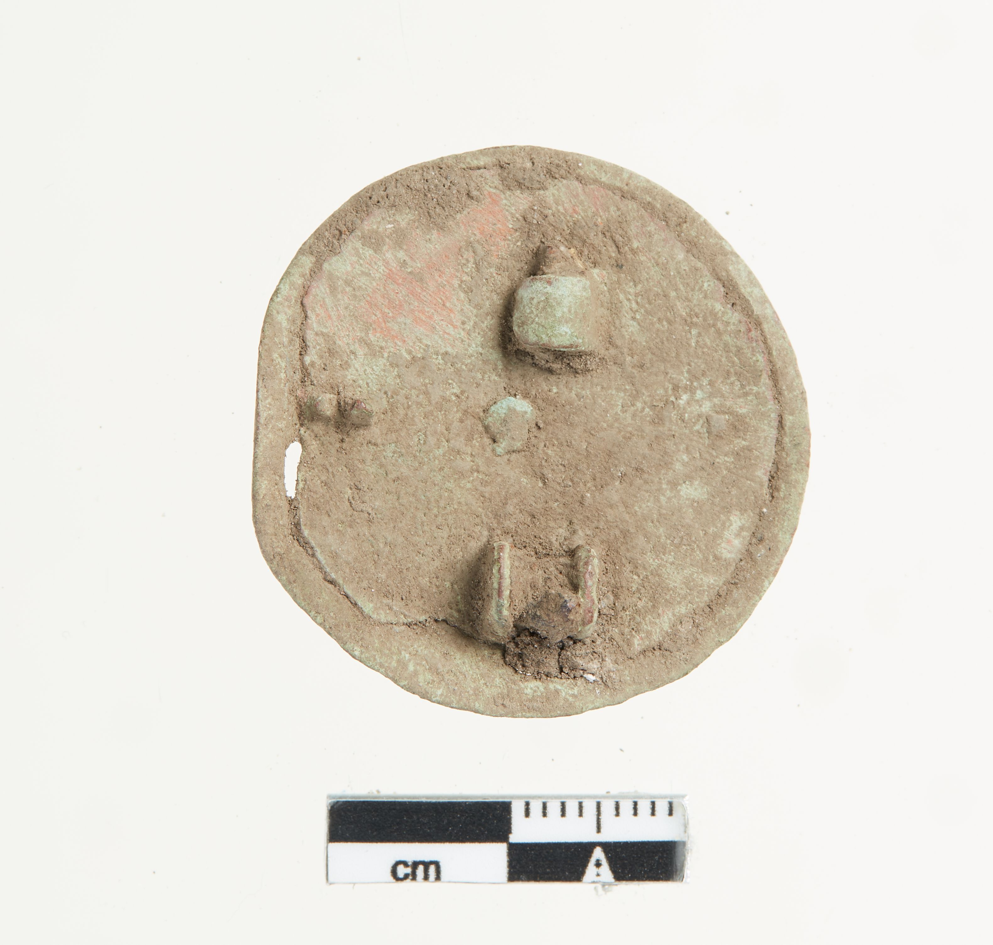 "betegnelse": "Cirkulær pladefibula, dobbeltskallet, bronze, vik.",