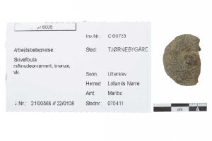 "betegnelse": "Skivefibula m/knudeornament, bronze, vik.",