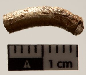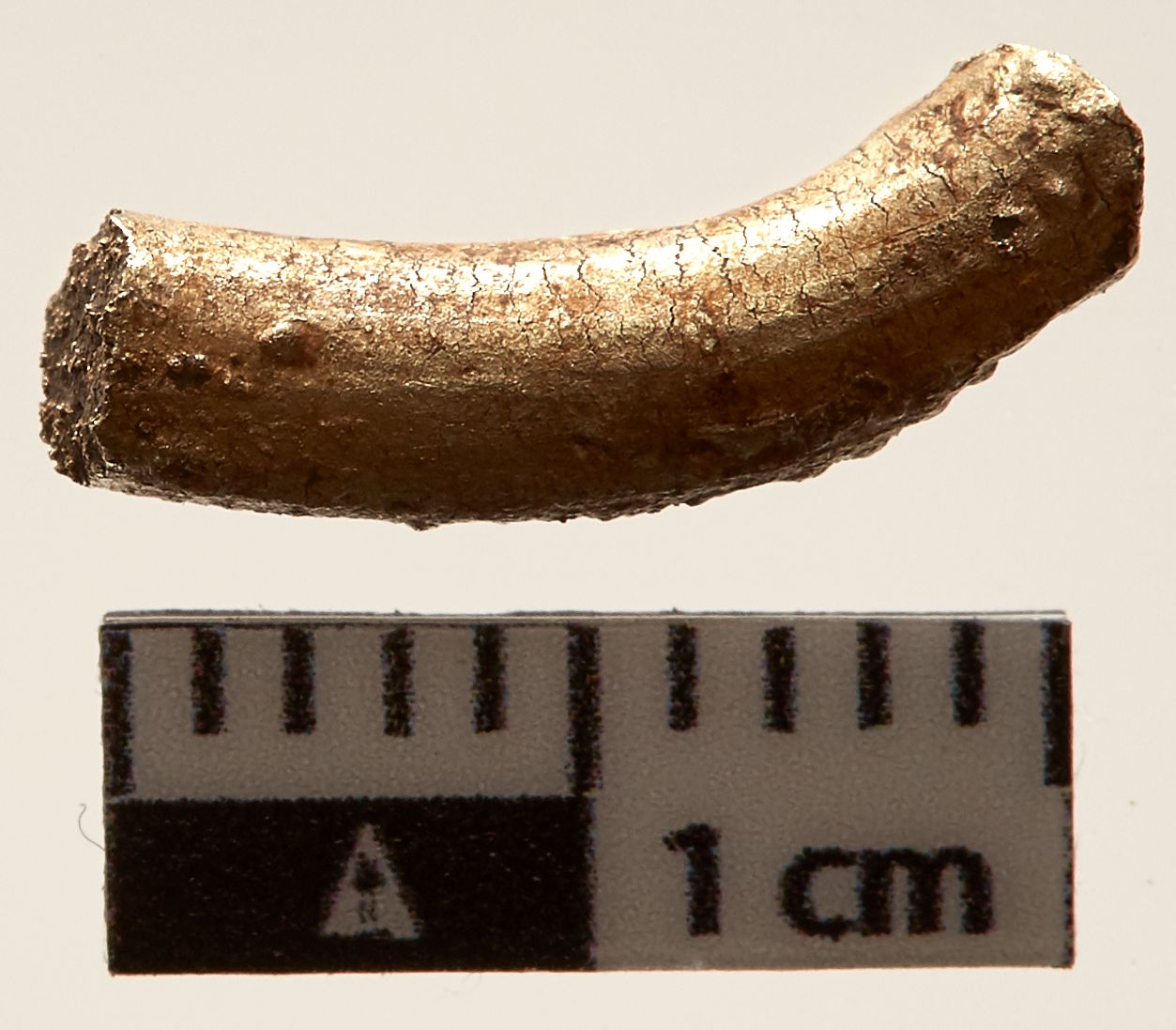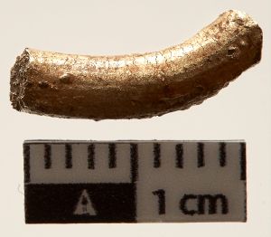 "Stykke af stang, sølvblandet, guldet fremstår blegt."