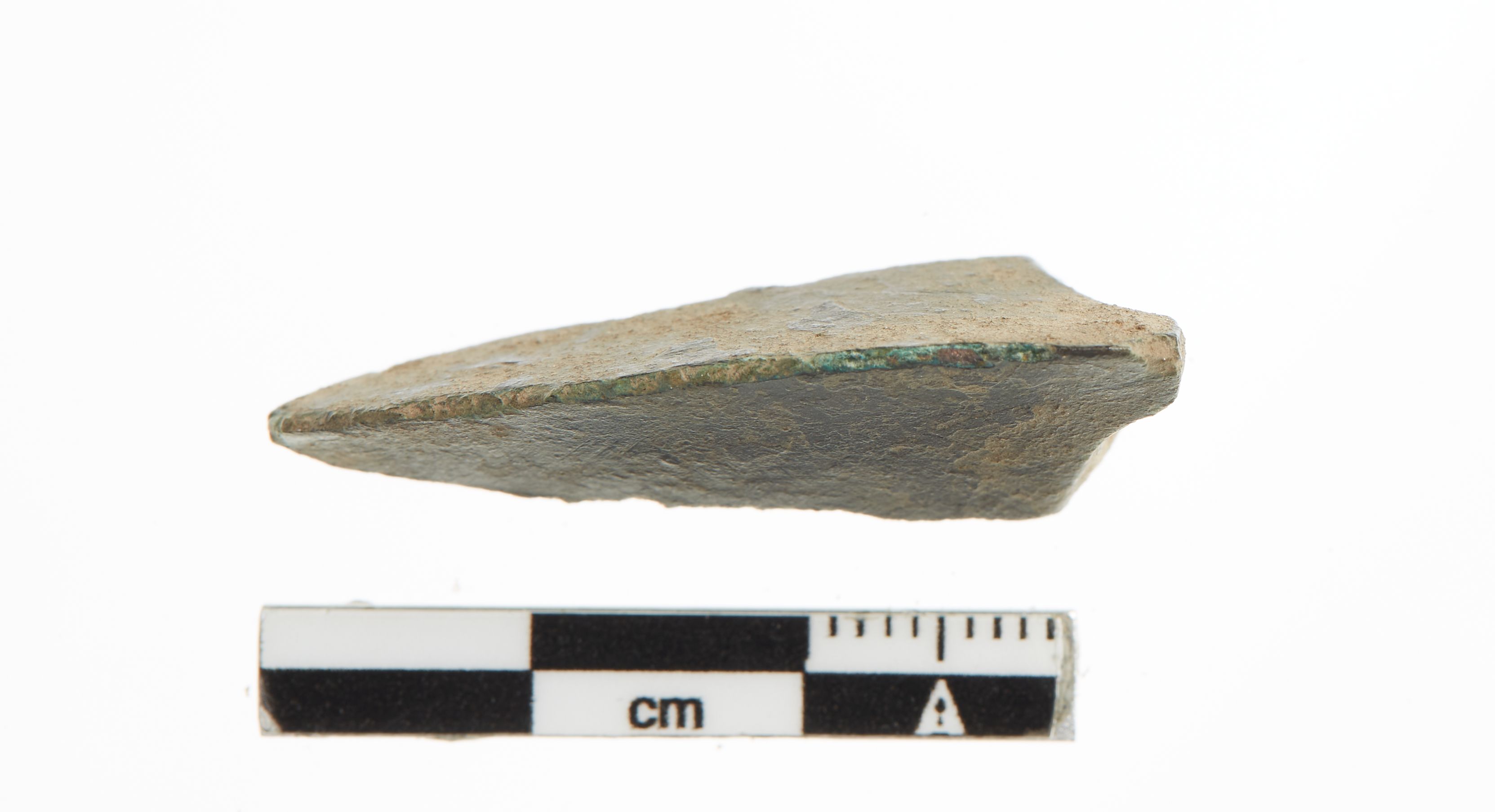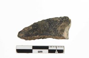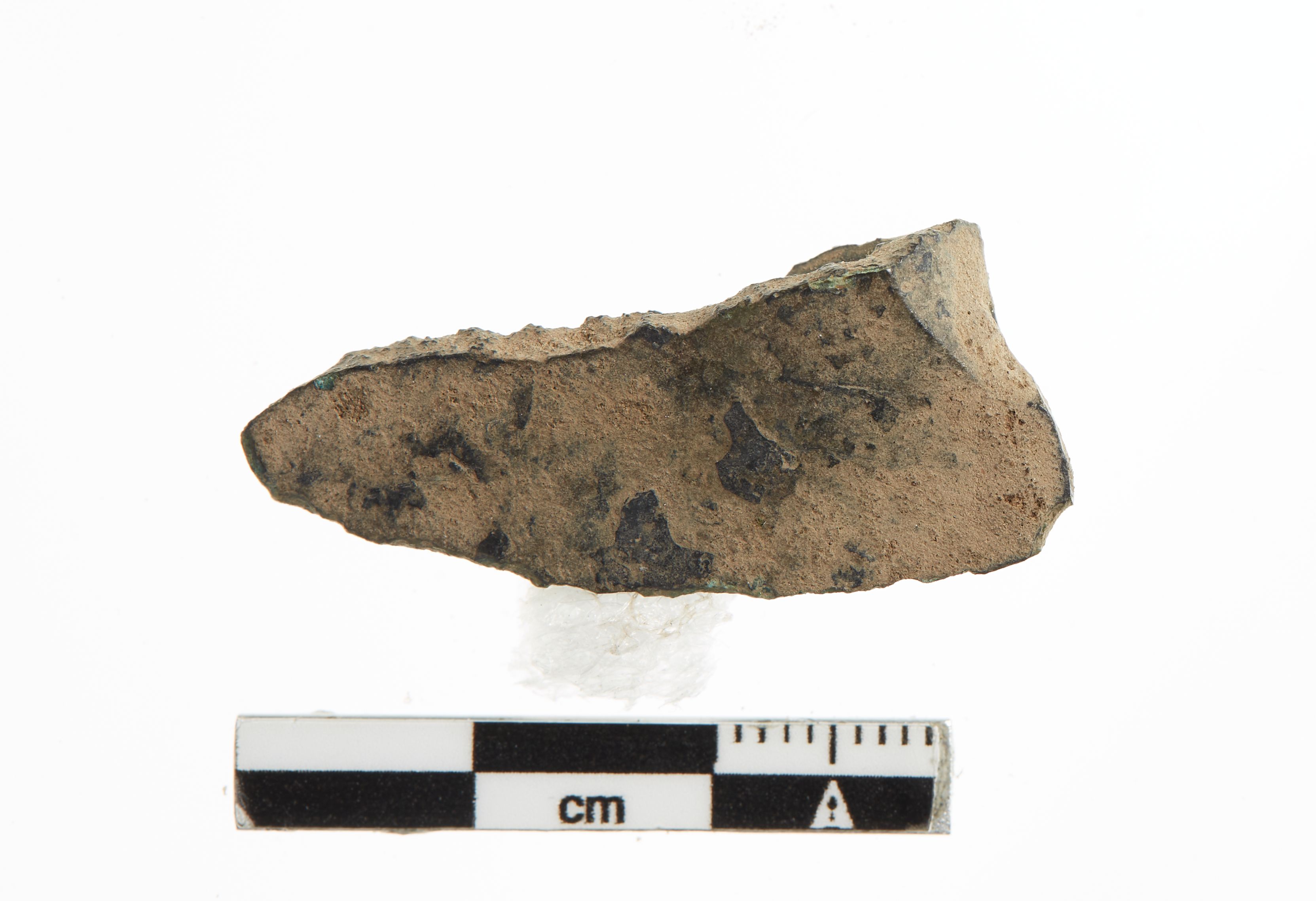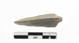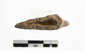 "Et fragment af æggen fra en økse, antageligt en celt, idet den fremstår hulstøbe."
