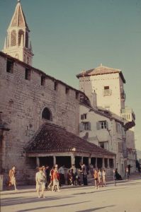 Farvefotografi. Plastikdias i plastramme, som har placering i en rød plastæske beregnet til denne type dias med plads til 50 dias. Æsken indeholder i alt dias. I Æskens låg er vedlagt en seddel, hvorpå der står: ”Jugoslavien sept. - okt. 1968 3. Forevisningsserie - Gradac, Split, Trogir, Hvar, Šibenik, Zadar, Pag, Plitvice, Skrad". Under påskriften er stemplet: "Henning Henningsen museumsdirektør, dr. phil. Flynderborgvej 7 3000 Helsingør (Danmark)". Æsken er ydermere mærket med "Jugoslavien 1968 Forevisning 3." og ”D46”.