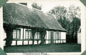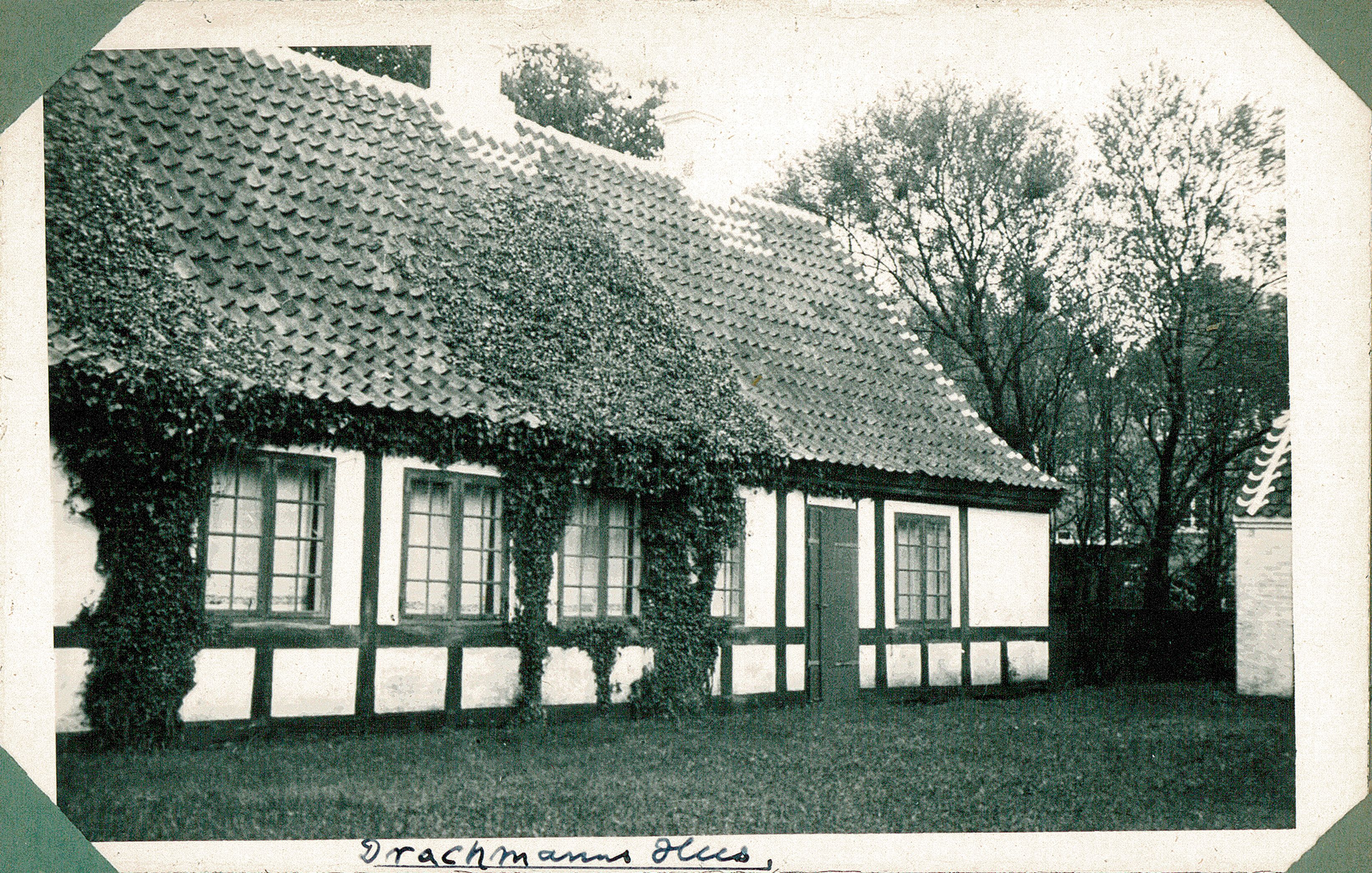 Sort/hvid postkort. Under fotografiet står skrevet: "Drachmanns Hus." Fotografiet er en del af fotoalbummet "Jylland. Vendsyssel". Albummet er i grønt pap. Det er 25x17x4cm. På forsiden står påskriften "Brevkort" trykt i guldbogstaver. På forsiden findes tre mindre sorte dekorationer. Alle fotografier er indsat på grønne sider af tykt papir. Der er plads til to fotografier pr. side, som sidder fast i albummet i slidser. Albummet indeholder 183 fotos fordelt på 100 sider. På indersiden af albummet er påklistret en mærkat, hvorpå der står "Jylland. Vendsyssel" nedenunder står noget skrevet som igen er streget ud.