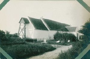 Sort/hvid fotografi. Fotografiet er en del af fotoalbummet "Jylland. Vendsyssel". Albummet er i grønt pap. Det er 25x17x4cm. På forsiden står påskriften "Brevkort" trykt i guldbogstaver. På forsiden findes tre mindre sorte dekorationer. Alle fotografier er indsat på grønne sider af tykt papir. Der er plads til to fotografier pr. side, som sidder fast i albummet i slidser. Albummet indeholder 183 fotos fordelt på 100 sider. På indersiden af albummet er påklistret en mærkat, hvorpå der står "Jylland. Vendsyssel" nedenunder står noget skrevet som igen er streget ud.