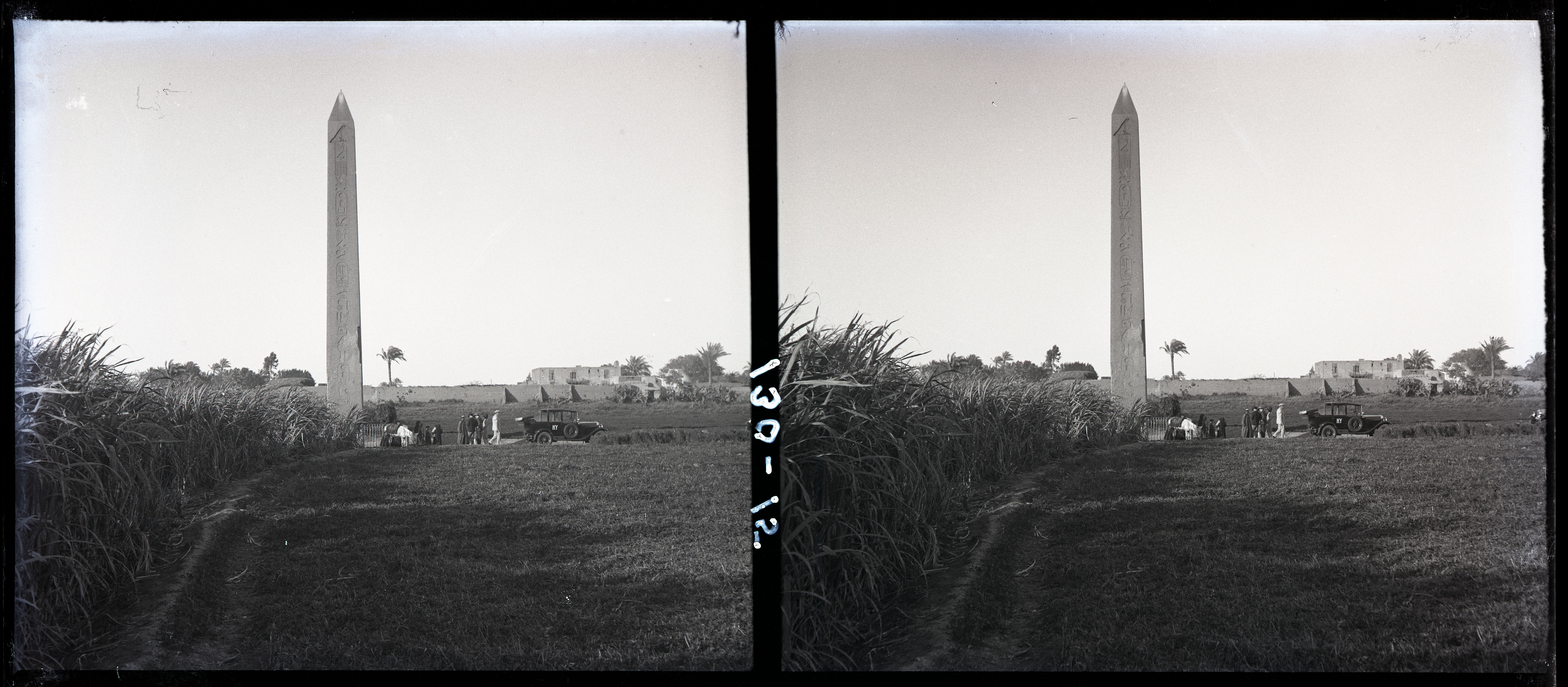 Stereoskopisk glasdias. Ligger i en æske med påskiften: "Egypten 130". På æsken er påklistret teksten: "Placas Orto-Antihalo Kolux".