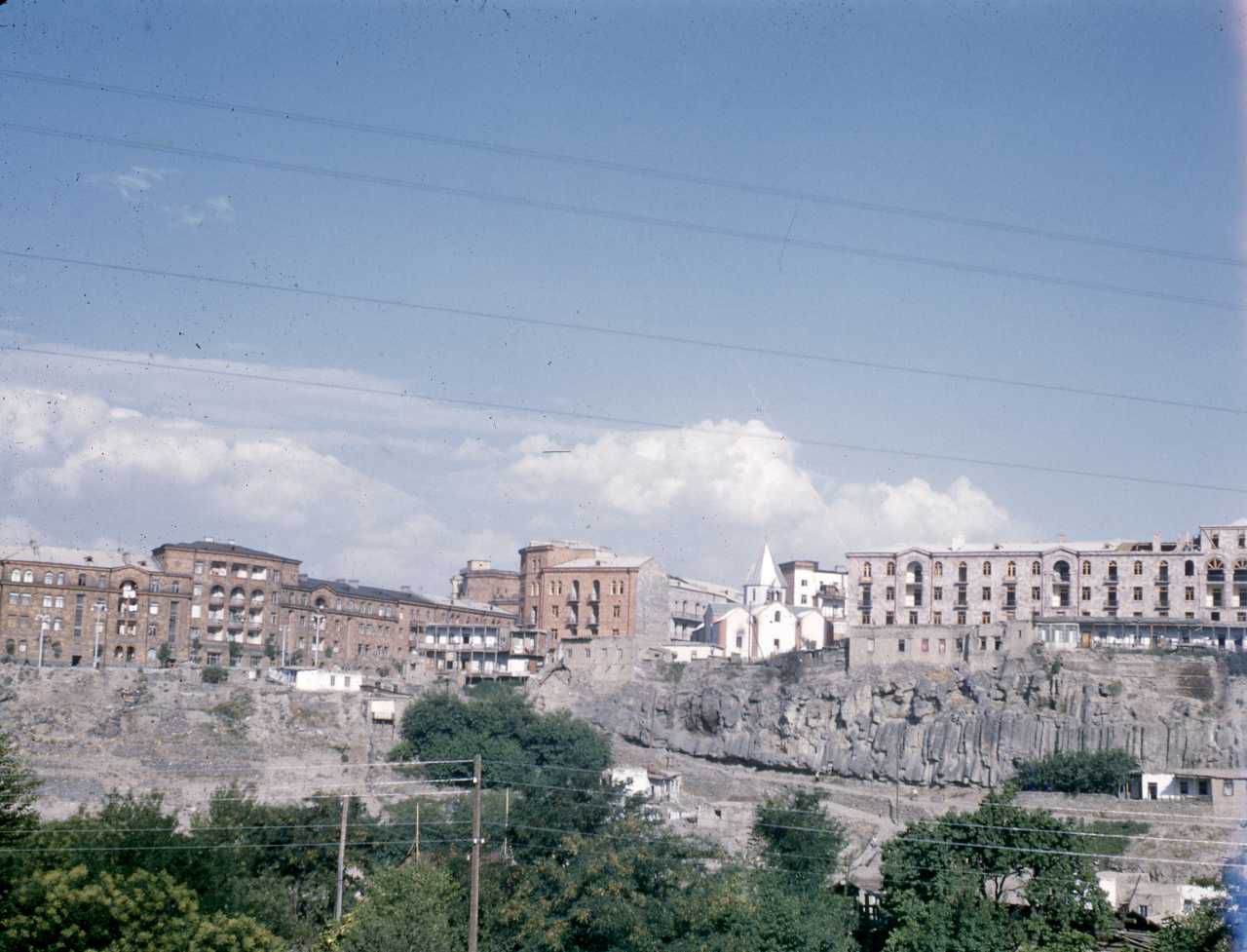 Farvefotografi. Diasset er placeret i en trææske som indeholder 69 glasdias. På æsken står skrevet: ”1955: Sydamerika. Vestindien. 1956: SSSR. Kanton”. I æskens låg står der: "Billeder fra: Sydamerika 1955, SSSR og Kina 1956 og Trankebar. Æsken har nummer D395.