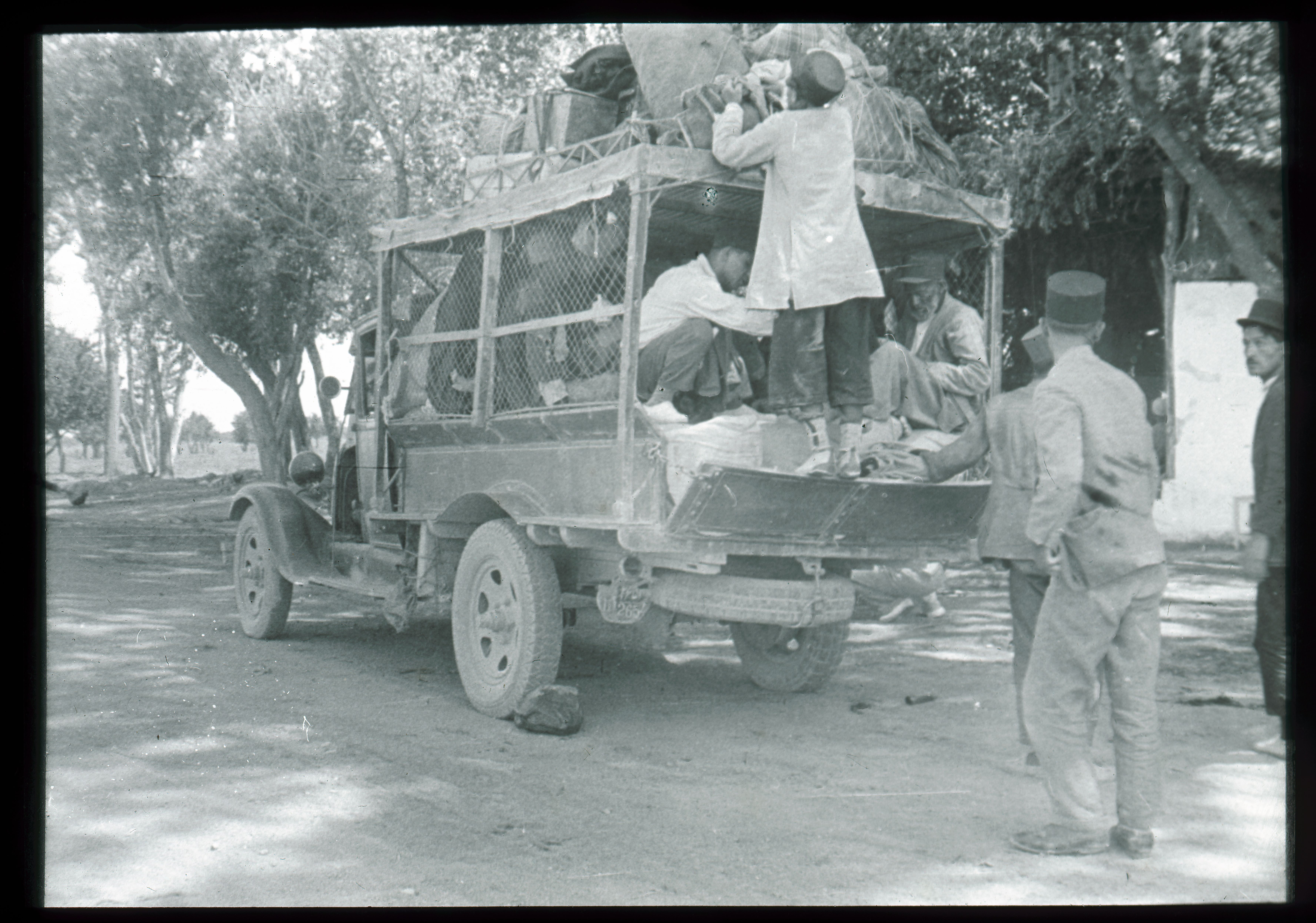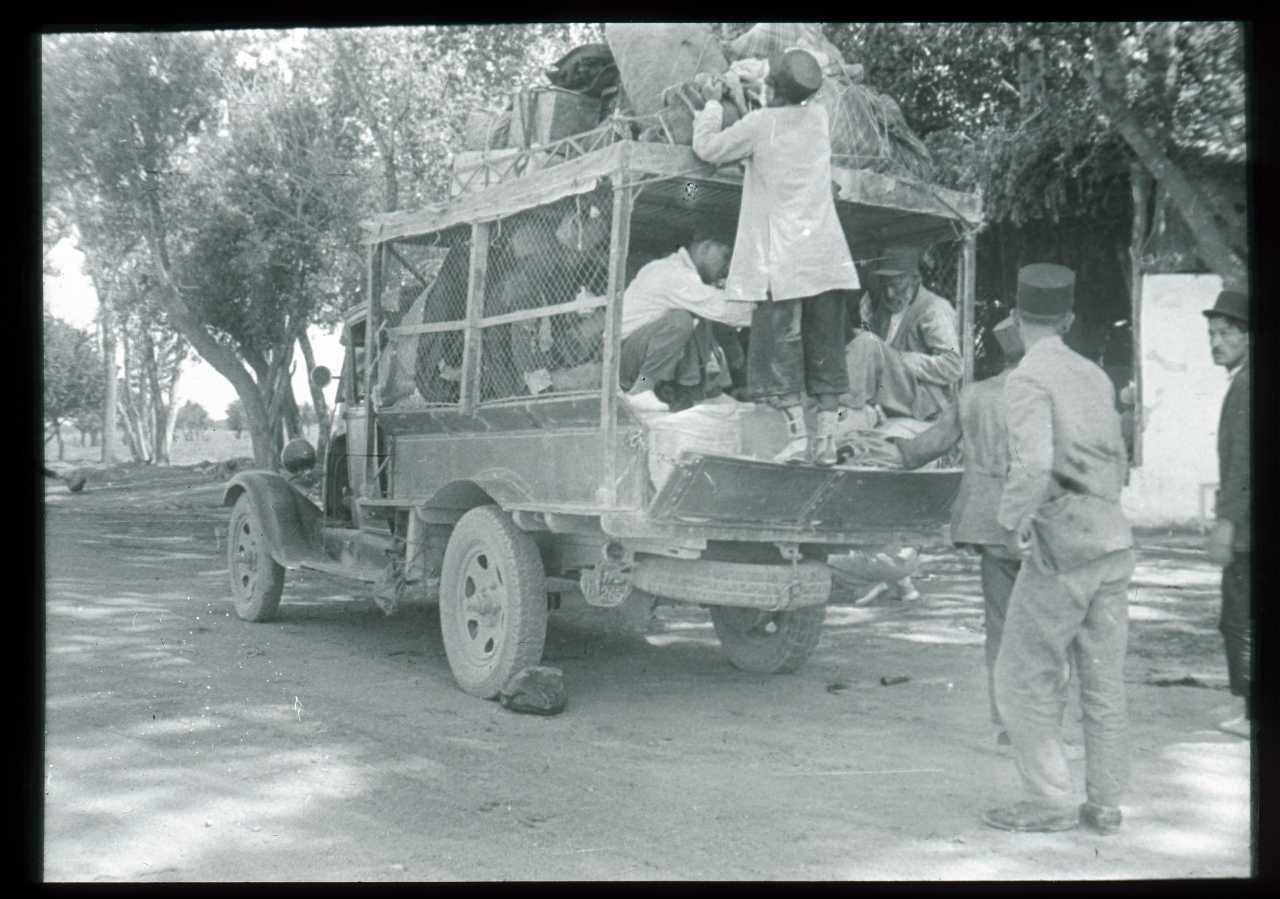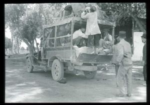 Sort/hvid fotografi. Diasset er placeret i en trææske med plads til 50 dias i størrelsen 8x8 cm. Æsken indeholder 40 glasdias, og har nummer D452. På æsken står skrevet: ”Persien” "JF SP 1933 Persien". I låget på æsken står fotografiernes titler skrevet. Titlerne stemmer ikke altid overens med de pågældende fotografier.
