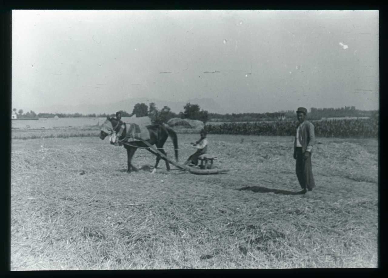 Sort/hvid fotografi. Diasset er placeret i en trææske med plads til 50 dias i størrelsen 8x8 cm. Æsken indeholder 40 glasdias, og har nummer D452. På æsken står skrevet: ”Persien” "JF SP 1933 Persien". I låget på æsken står fotografiernes titler skrevet. Titlerne stemmer ikke altid overens med de pågældende fotografier.