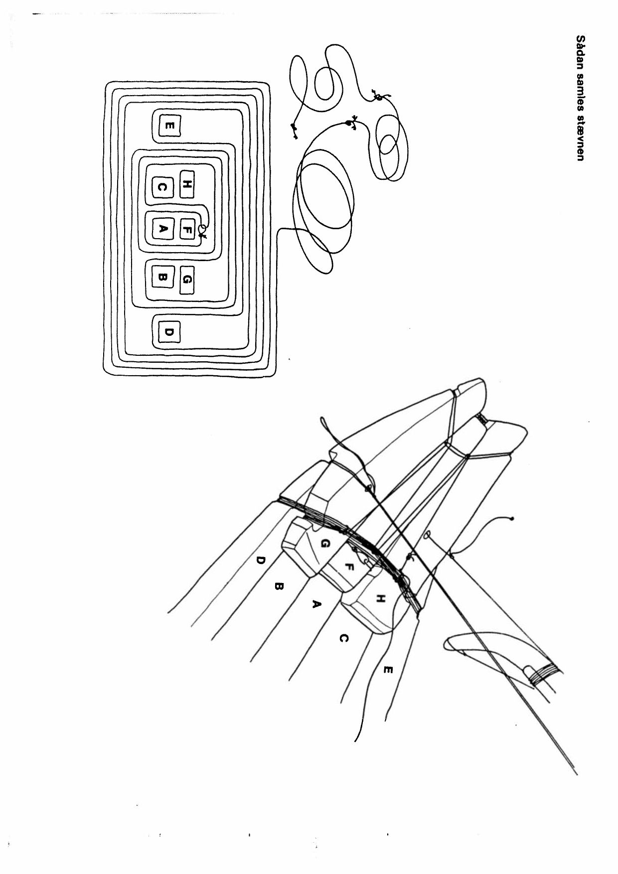 Fem tegninger til illustration af de enkelte dele samt surringerne af en traditionel katamaran anvendt i fiskeriet ud fra Tranquebars kyst i 1981. Den illustrerede katamaran består af fem tømmerstokke med bomuldssejl, padler, ror og anker samt reb.