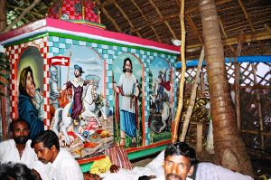 Fotoet er taget i regi af Nationalmuseets Tranquebar Initiativ (2004-2016), hvor delprojektet ”Tro, kaste og social kapital - kristne kirker i Tranquebar efter Indiens uafhængighed” i 2006-2007 havde fokus på de mange former for kontakt i hverdag og fest mellem de religiøse grupperinger i Tranquebar, og hvorledes det har skabt en række bånd mellem disse og har medført en gensidig påvirkning, der indebærer ikke blot en kristen indflydelse på de lokale hinduistiske og muslimske traditioner, men også af en forvandling af de kristne traditioner. Tranquebar - eller Tharangampadi - er en landsby på Coromandelkysten af Sydindien. Den ligger ca. 300 kilometer syd for Chennai i delstaten Tamil Nadu. En stor del af Tranquebars befolkning er beskæftiget med fiskeri eller erhverv relateret til dette. Der tales tamilsk, og hovedparten af områdets befolkning er hinduer, men der er også et mindretal af muslimer og kristne. I Indiens kolonitid fungerede Tranquebar som en dansk handelsstation fra 1620-1845. Stedet har en rig interkulturel historie, dokumenteret i historiske bygninger og skriftlige kilder samt etnografiske samlinger af genstande, fotos og optegnelser af folkeliv i fortid og nutid.