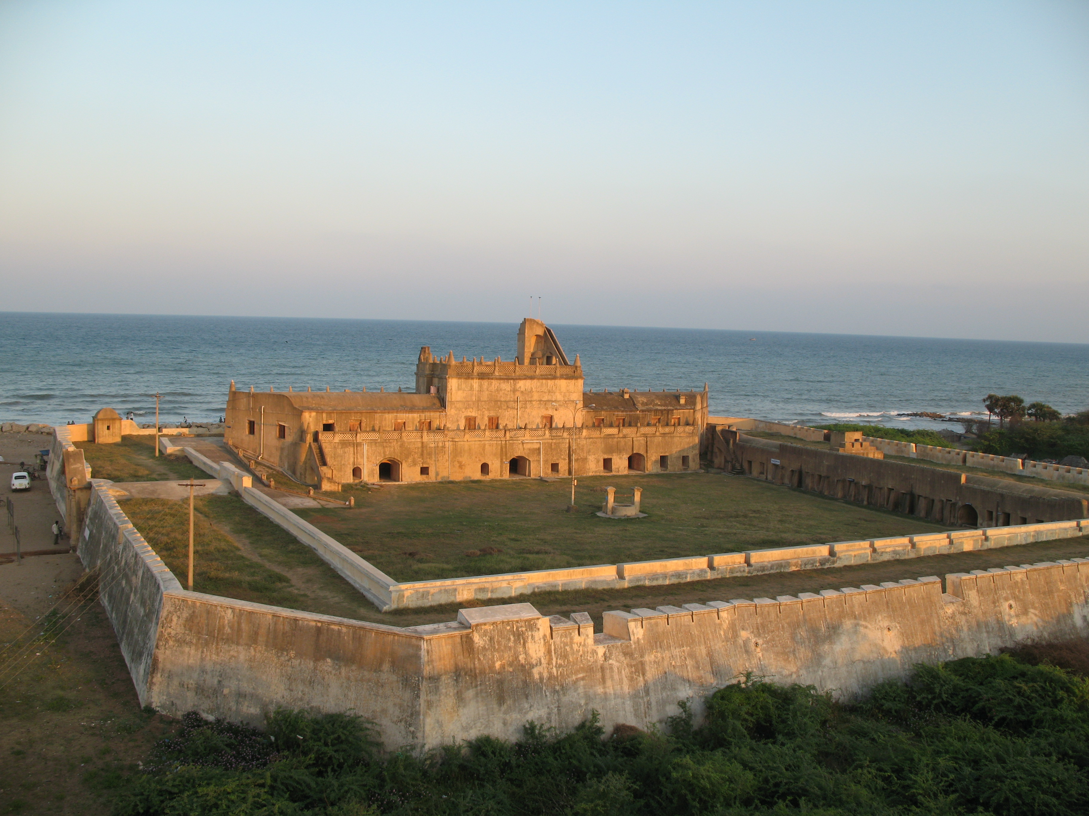 Det danske ostindiske handelskompagni byggede fæstningen Dansborg i 1620 med tilladelse fra Kong Raghunatha Nayak i Thanjavur. Formålet var at beskytte købmænd og embedsmænd i dansk tjeneste og at lagre handelsvarerne, indtil de kunne sælges enten på markeder langs det Bengalske Hav eller tages med skib hjem til Danmark. Ud for fortet mod nord var Paradepladsen, som blev anvendt til militære øvelser og processioner under modtagelsen af delegationer fra indiske konger. I 1774 var vand fra voldgraven rundt om fæstningen begyndt at underminere murene, og voldgraven blev derefter fyldt op for at understøtte fundamentet. Dette efterlod fæstningen med sit nuværende udseende. Et lille udsnit af den overdækkede voldgrav blev udgravet i 2008 i et fælles projekt med Archeological Survey of India, Tamil Nadu State Department of Archeology og Nationalmuseets Tranquebar Initiativ, Danmark. Udgravningens afslørede spor af den oprindelige vindebro samt flere dagligdags genstande såsom lerpiber, kinesisk porcelæn, europæiske vinflasker og indiske lerpotter.