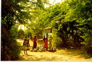 Kvinder henter vand ved fælles vandaftapning i gaden, Tranquebar 1998
