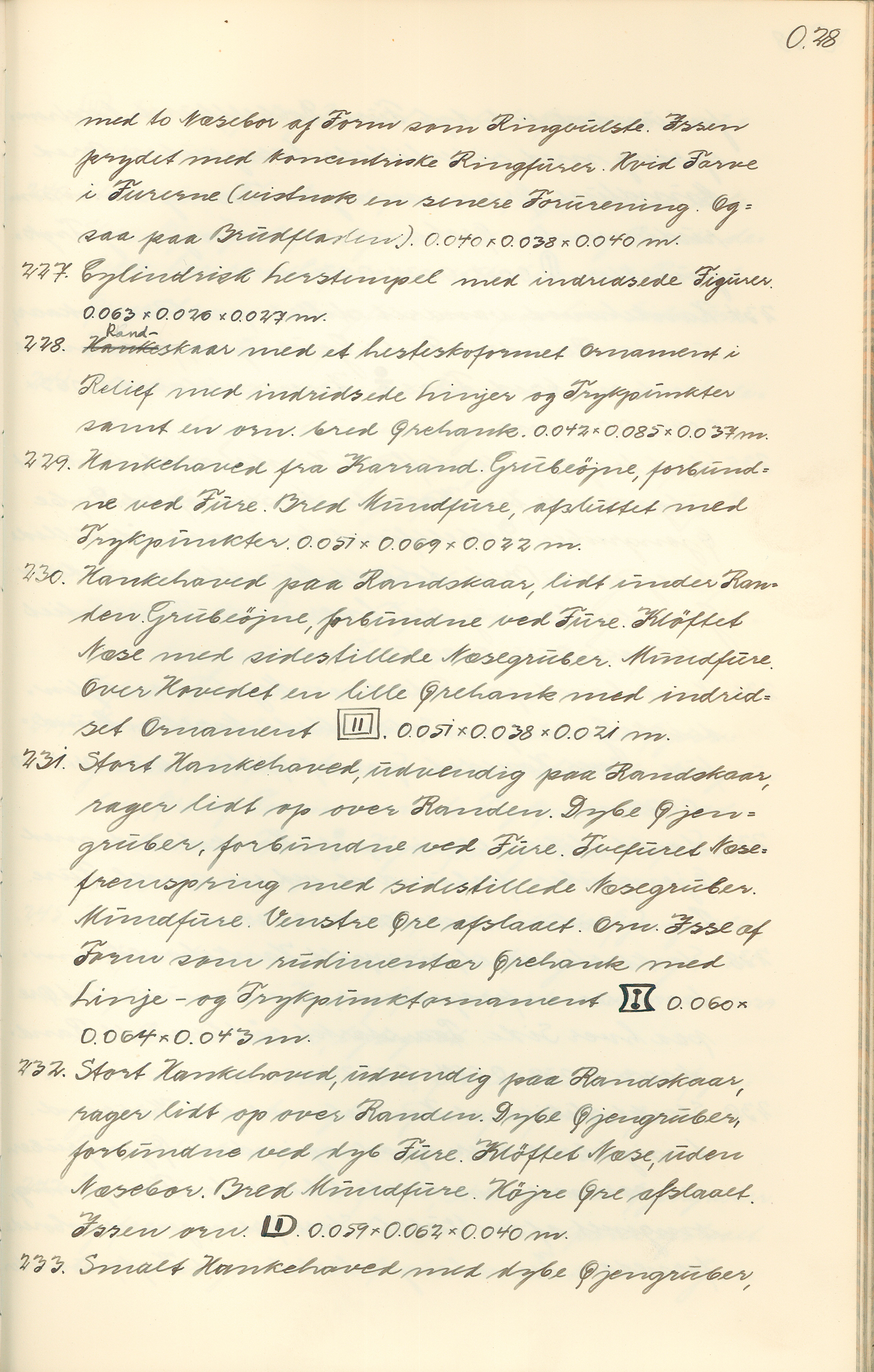 { "id": 129375, "samling": "ES", "identifikation": "O.28.230", "betegnelse": "hankehoved", "klassifikationer": [], "alternativeNumre": [], "beskrivelser": [], "materialer": [], "maalinger": [ { "part": "202215", "type": "Længde", "vaerdi": 5.1, "enhed": "cm" }, { "part": "202216", "type": "Bredde", "vaerdi": 3.8, "enhed": "cm" }, { "part": "202217", "type": "Højde", "vaerdi": 2.1, "enhed": "cm" } ], "haendelser": [ { "id": "Es-1061316", "titel": "Fund/Indsamling", "undertitel": "Indsamling", "beskrivelse": "Gudmund Hatts ekspedition til Vestindien 1922-23 - Indsamlingshændelse - protokol nr 28. Constanza-dalen, Santo Domingo.", "starttid": "1-1-1922", "sluttid": "31-12-1923", "lokalitet": { "koder": [ "Dominican Rebublic (SV2)", "Dominikanske Republik (Dominikanske Republik)" ], "angivelser": "Constanza-dalen" } }, { "id": "Es-1062566", "titel": "Accession", "undertitel": "Direkte fra indsamling/undersøgelse/udgravning", "beskrivelse": "Gudmund Hatts ekspedition til Vestindien 1922-23 - Accessioneret løbende på Nationalmuseet under Gudmund Hatts ekspedition (november 1922 - august 1923). Kasserne blev løbende sendt fra Jomfruøerne til København mellem maj og december 1923.", "starttid": "1-5-1923", "sluttid": "31-12-1923", "lokalitet": { "koder": [] } } ], "billeder": [ { "id": "ES-109114", "kilde": "Cumulus", "type": "Still", "undertype": "Protokol", "filnavn": "479.tif" }, { "id": "ES-133746", "kilde": "Cumulus", "type": "Still", "undertype": "Standard", "filnavn": "ES_129375_a.tif" }, { "id": "ES-133751", "kilde": "Cumulus", "type": "Still", "undertype": "Standard", "filnavn": "ES_129375_b.tif" } ], "indexId": "es-129375" }