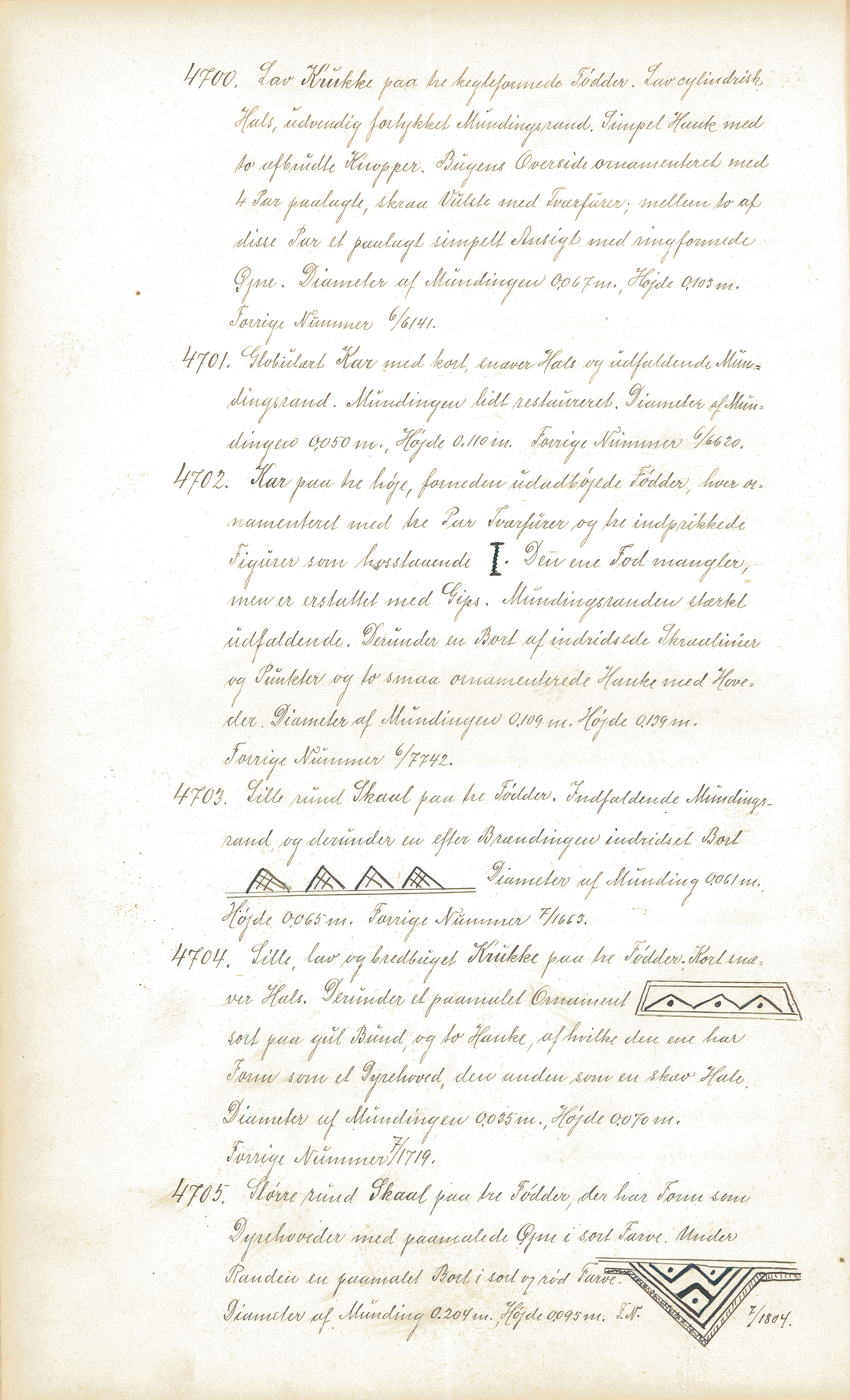 { "id": 130396, "samling": "ES", "identifikation": "O.4704", "betegnelse": "krukke på fødder m. hanke", "klassifikationer": [], "alternativeNumre": [], "beskrivelser": [], "materialer": [ { "part": "161289", "type": "ler", "farve": "gul, sort" } ], "maalinger": [ { "part": "205155", "type": "Højde", "vaerdi": 7.0, "enhed": "cm" }, { "part": "205156", "type": "Diameter", "vaerdi": 3.5, "enhed": "cm", "specifikation": "mundingen" } ], "haendelser": [ { "id": "Es-1062382", "titel": "Accession", "undertitel": "Bytte", "beskrivelse": "Protokol Oldsager 3316-8724 - 4581-4756 er 1922 modtaget fra Museum of the American Indian, Heye Foundation, New York, i Bytte med en Samling af grönlandske etnografiske og arkæologiske Genstande. Journal No. 32/22", "starttid": "1-1-1922", "sluttid": "12-12-1922", "lokalitet": { "koder": [] } }, { "id": "Es-1062414", "titel": "Fund/Indsamling", "undertitel": "Indsamling/Fundoplysninger ukendte", "beskrivelse": "Protokol oldsager O.4689-4756 - Costa Rica", "lokalitet": { "koder": [] } } ], "billeder": [ { "id": "ES-107999", "kilde": "Cumulus", "type": "Still", "undertype": "Protokol", "filnavn": "E-M-I--O_OLDSAGER_3316_8724_189.tif" } ], "indexId": "es-130396" }