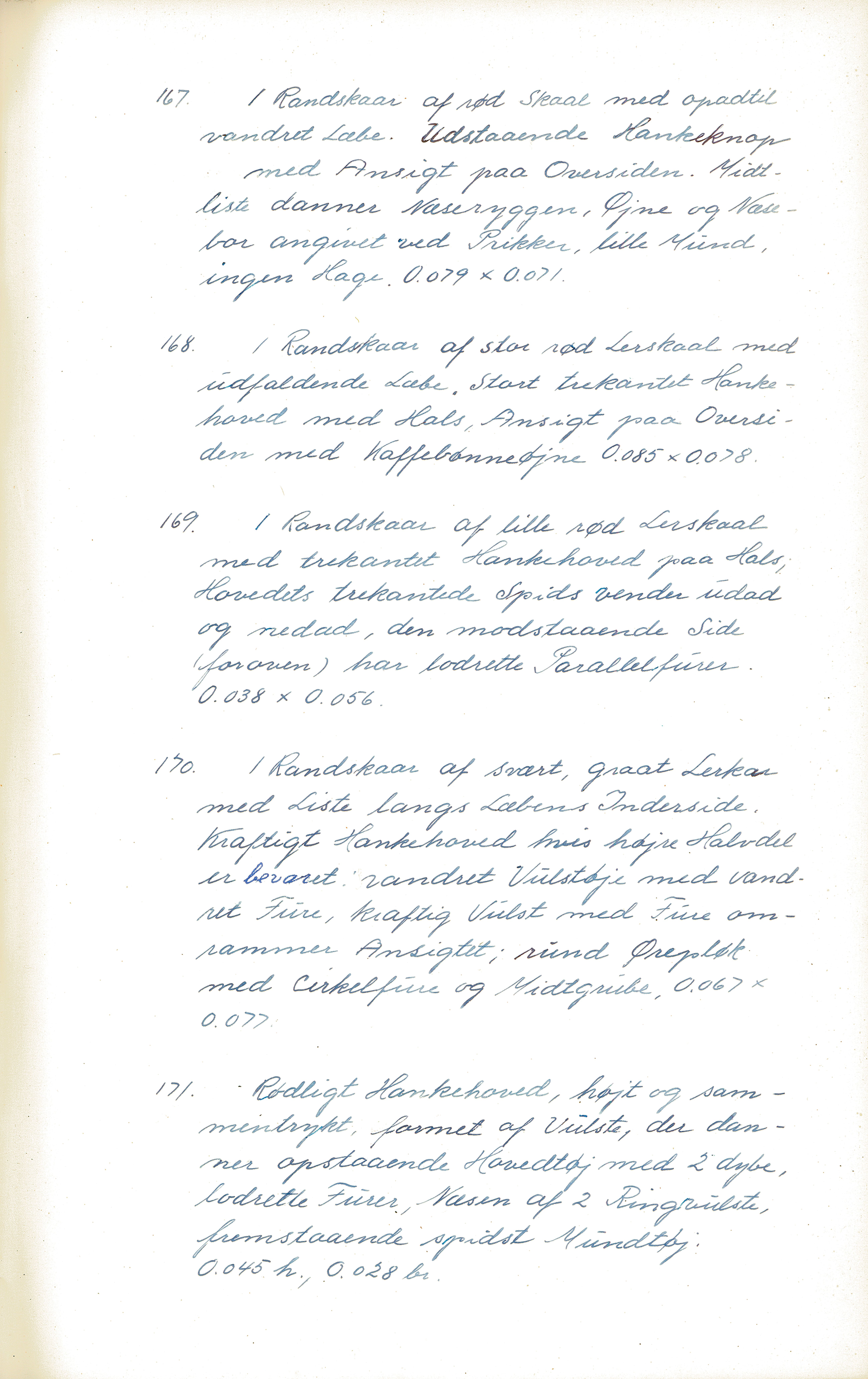 "beskrivelse": "Protokol O.33 - O.33.121-545 er i 1955 skænket af Fru F. Møller Jørgensen, Orange Gruve pr. Christianssted, St. Croix. Sagerne er gennem flere Aar udgravet af Fru Møller Jørgensen paa Familiens Ejendomme ved Salt River og Richmond, St. Croix. Journ. 143/58.",