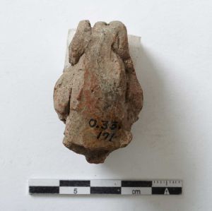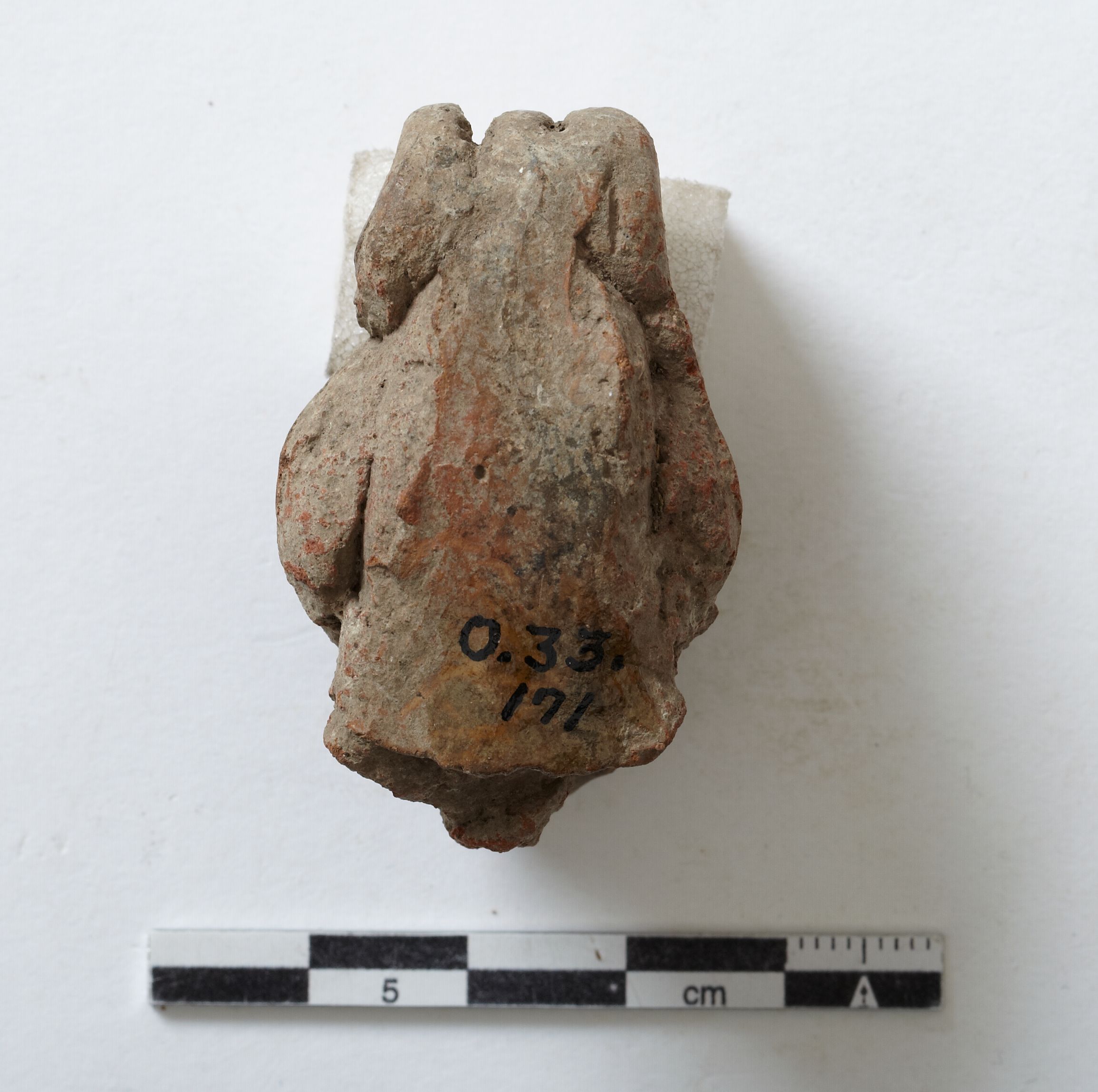 "beskrivelse": "Udgravet på St. Croix inden 1955 - Fundet ikke senere end til og med 1954. Protokoltekst: \"O.33.121-545 er i 1955 skænket af Fru F. Møller Jørgensen, Orange Grove pr Christianssted, St. Croix. Sagerne er gennem flere Aar udgravet af Fru Møller Jørgensen paa Familiens Ejendomme ved Salt River og Richmond, St. Croix. Journ. 143/58.\"",