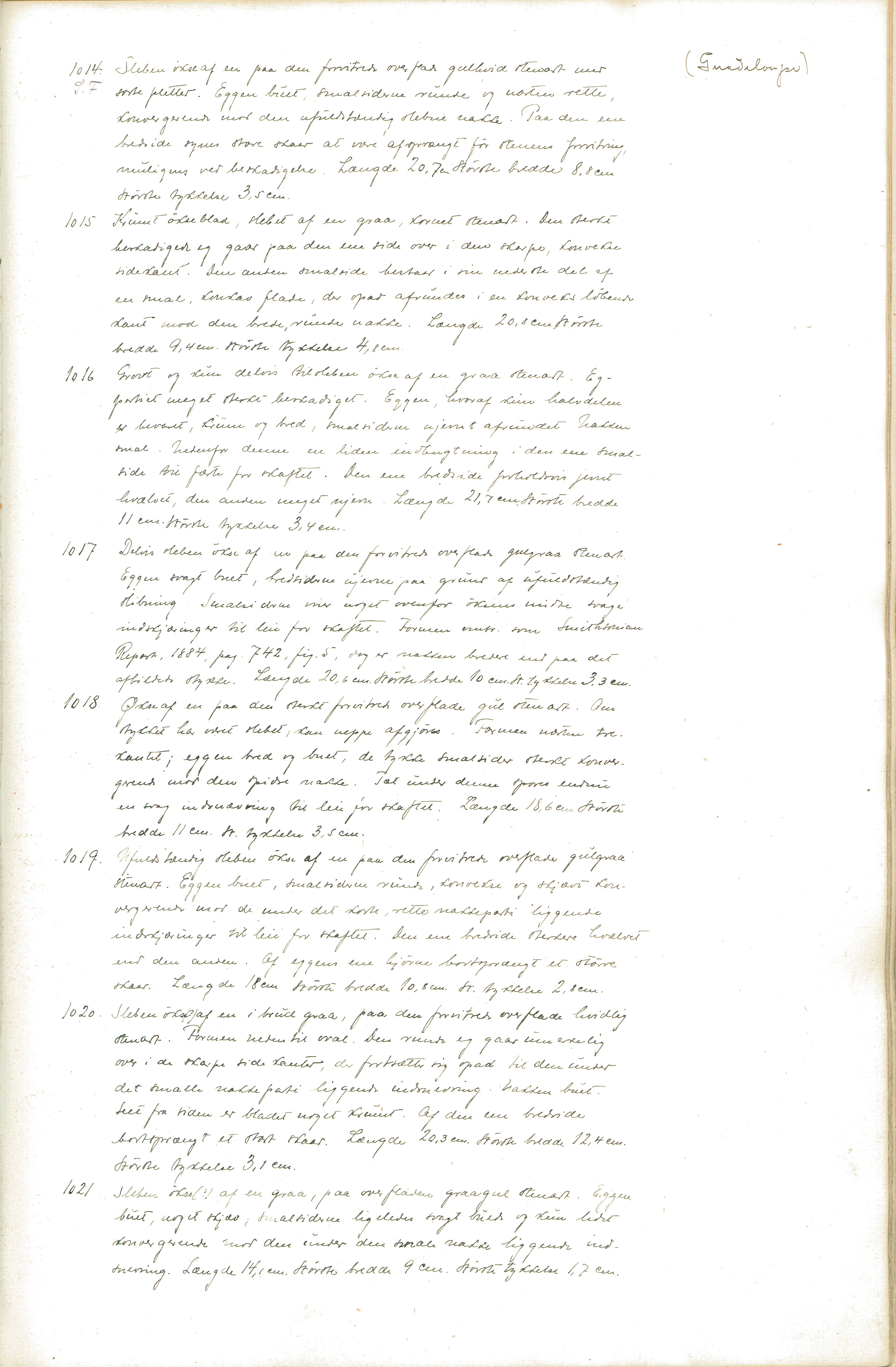 "beskrivelse": "Vestindien, oldsager - 1004-1104 - \"O1004-1104 er alle fra Guadeloupe, skjænket af M. Louis Guesdo i Pointe-à Pitre. Cfr. Journ. 179/99. En del af Guesde’s collection beskrevet I Smithsonian Report, 1884. pag 731 et seq.\"",